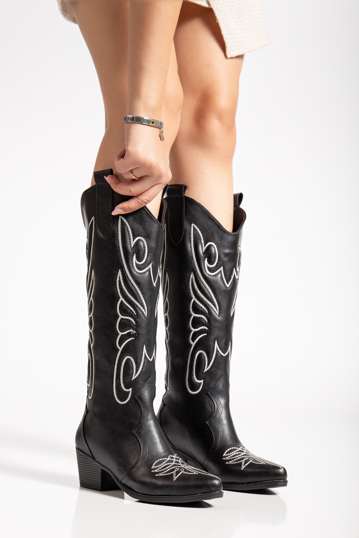 Kadın Kapartmalı Beyaz Nakış Detaylı Uzun Şık Kovboy Çizme Kadın Kapartmalı Beyaz Nakış Detaylı Uzun Şık Kovboy Çizme 219 40