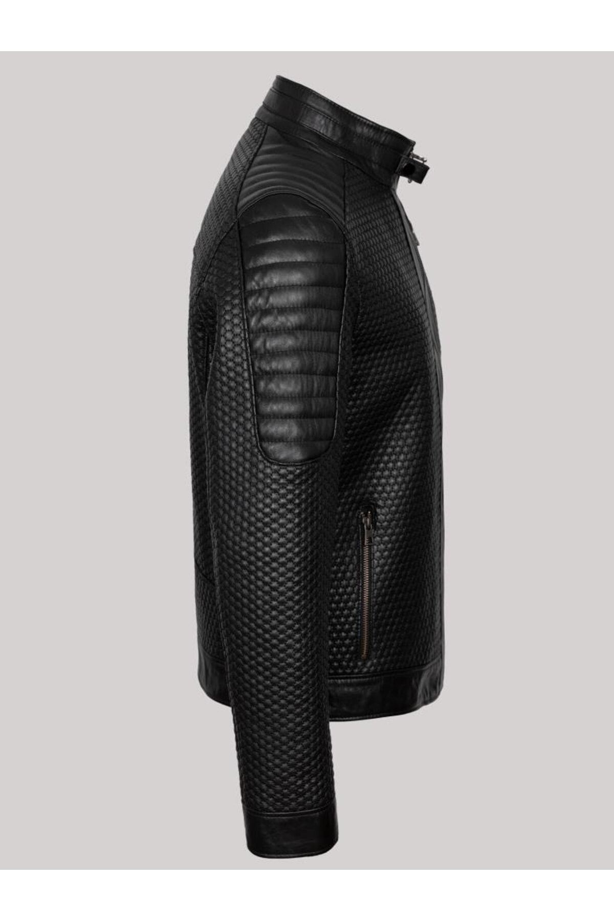 Hakiki Kuzu Derisi Siyah Erkek Deri Mont Petek Desen Deri Ceket Hakiki Kuzu Derisi Siyah Erkek Deri Mont Petek Desen Deri Ceket dw-12464902-310723 3XL