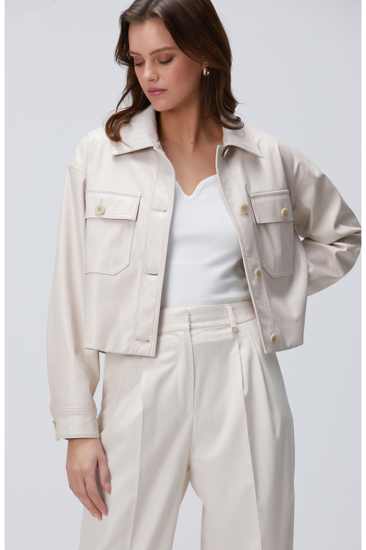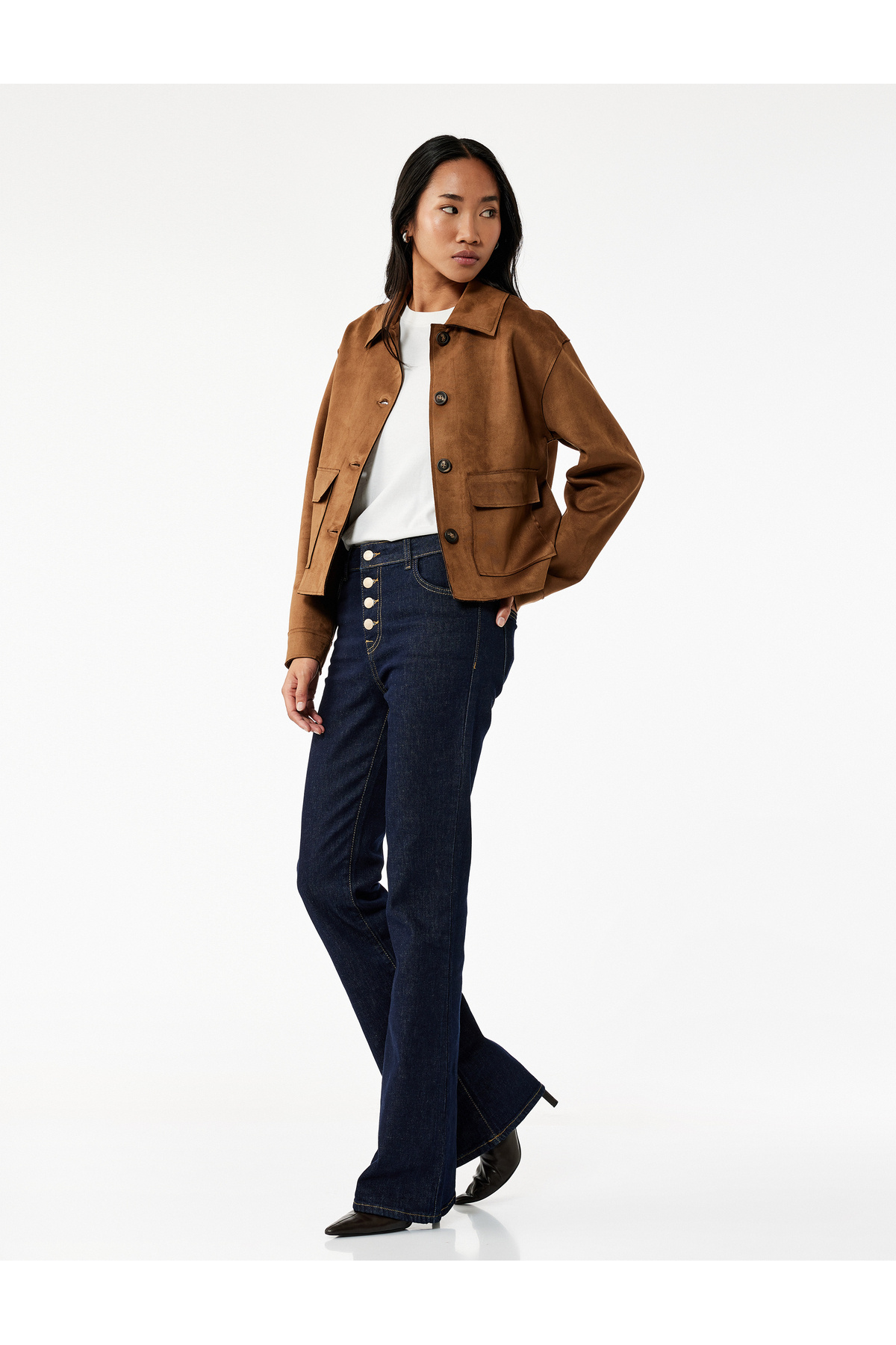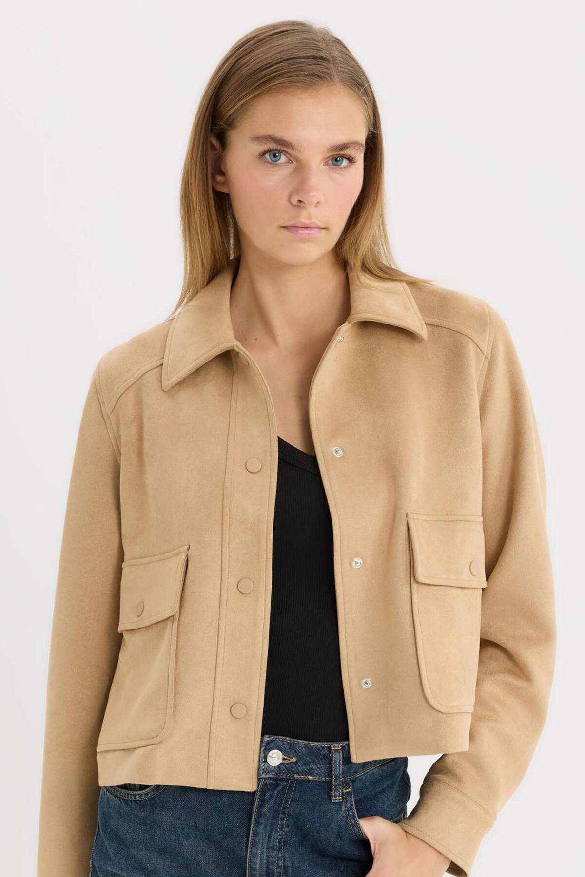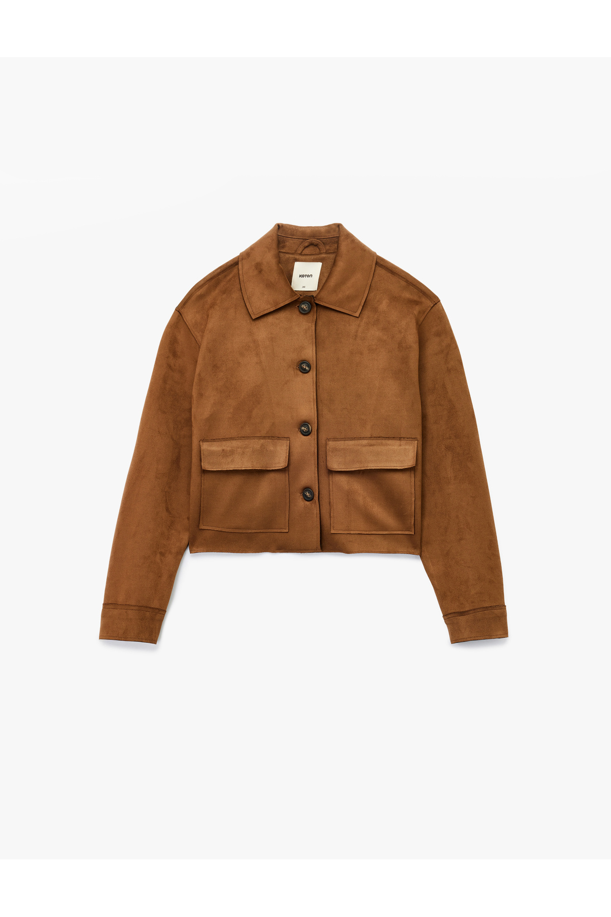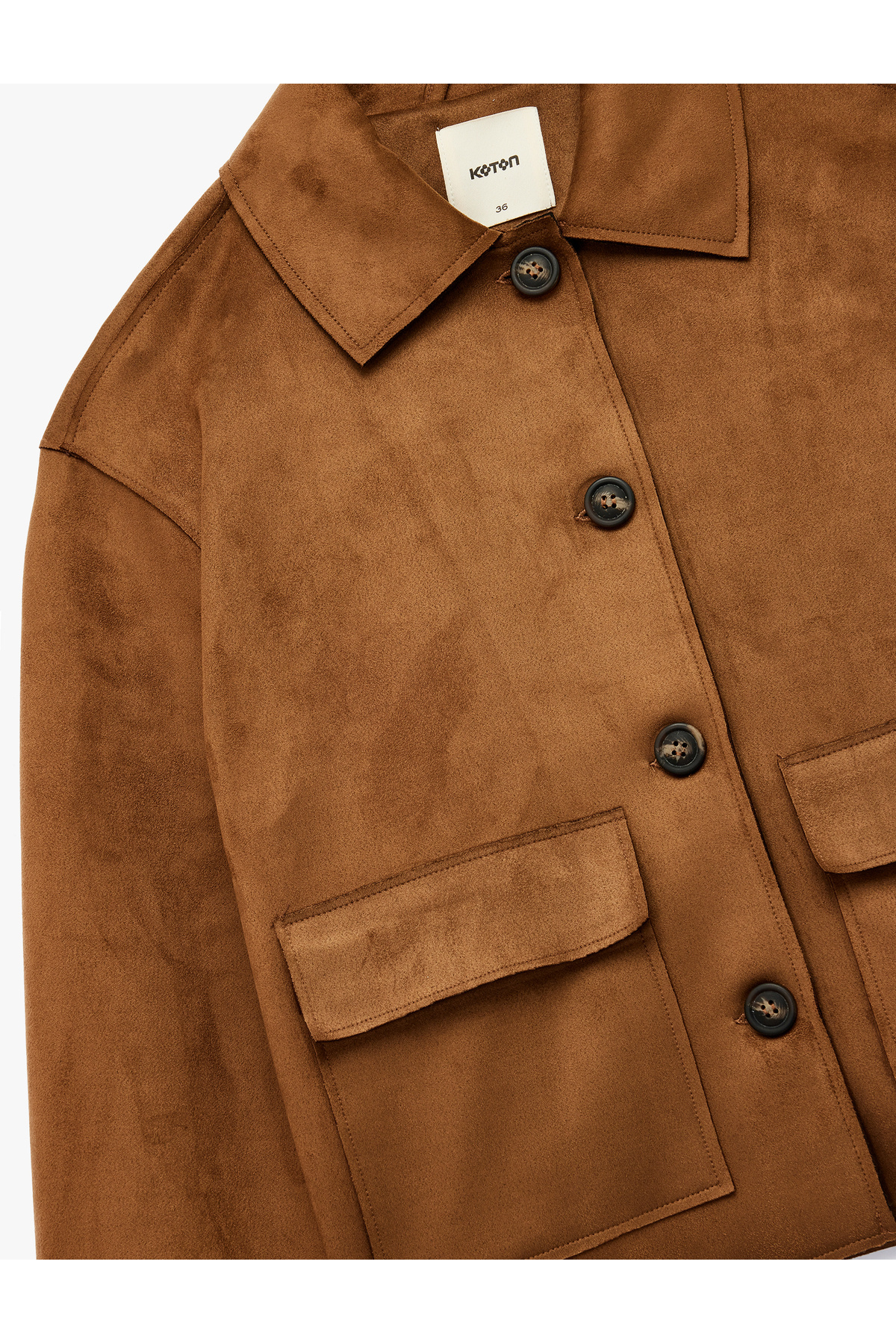Klasik Gömlek Yaka Düğmeli Cepli Uzun Kollu Crop Suni Süet Ceket Klasik Gömlek Yaka Düğmeli Cepli Uzun Kollu Crop Suni Süet Ceket 6WAK20284EW 42