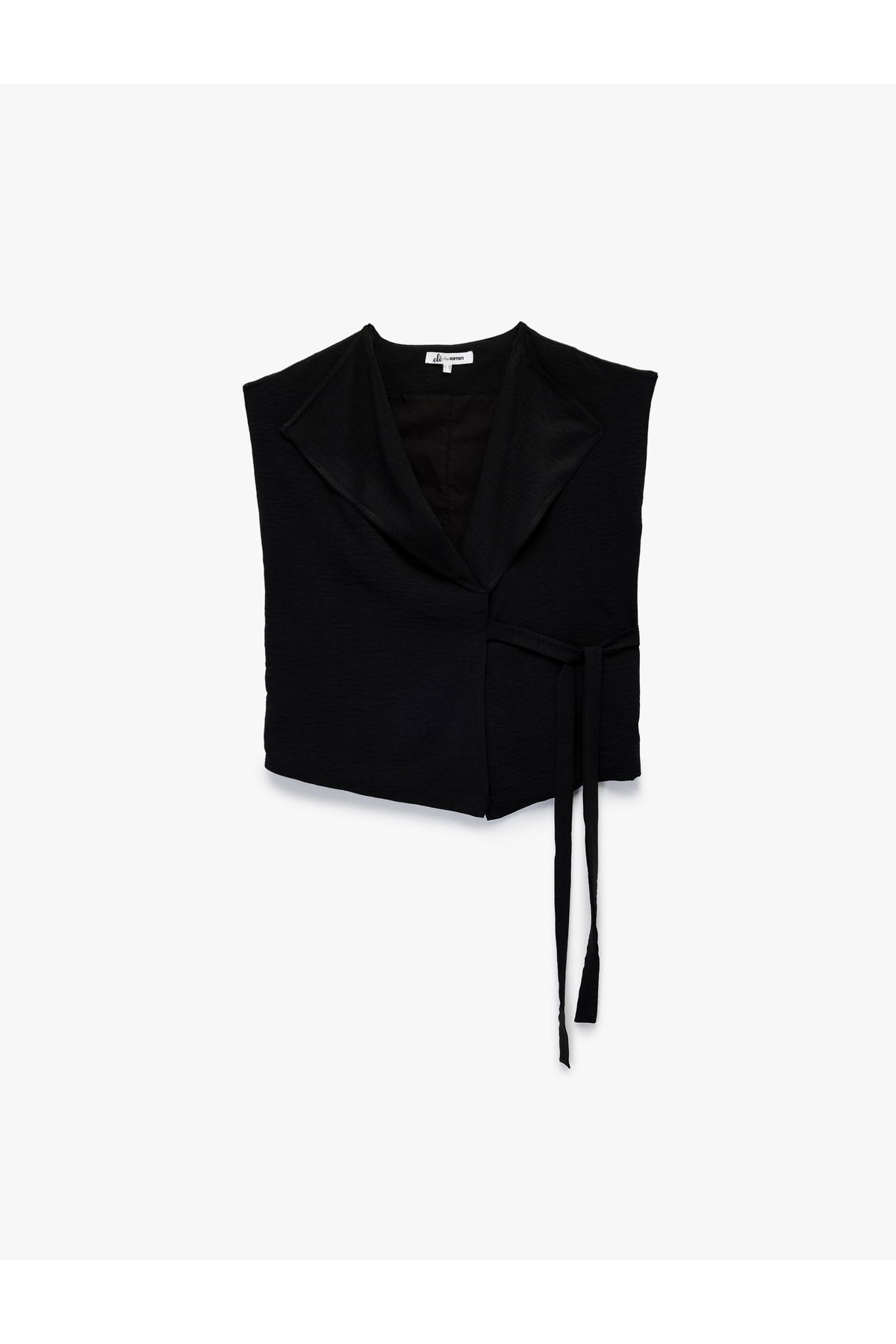 Bağlama Detaylı Kolsuz Kruvaze Yaka Bluz Bağlama Detaylı Kolsuz Kruvaze Yaka Bluz 6WAL30004IW 40