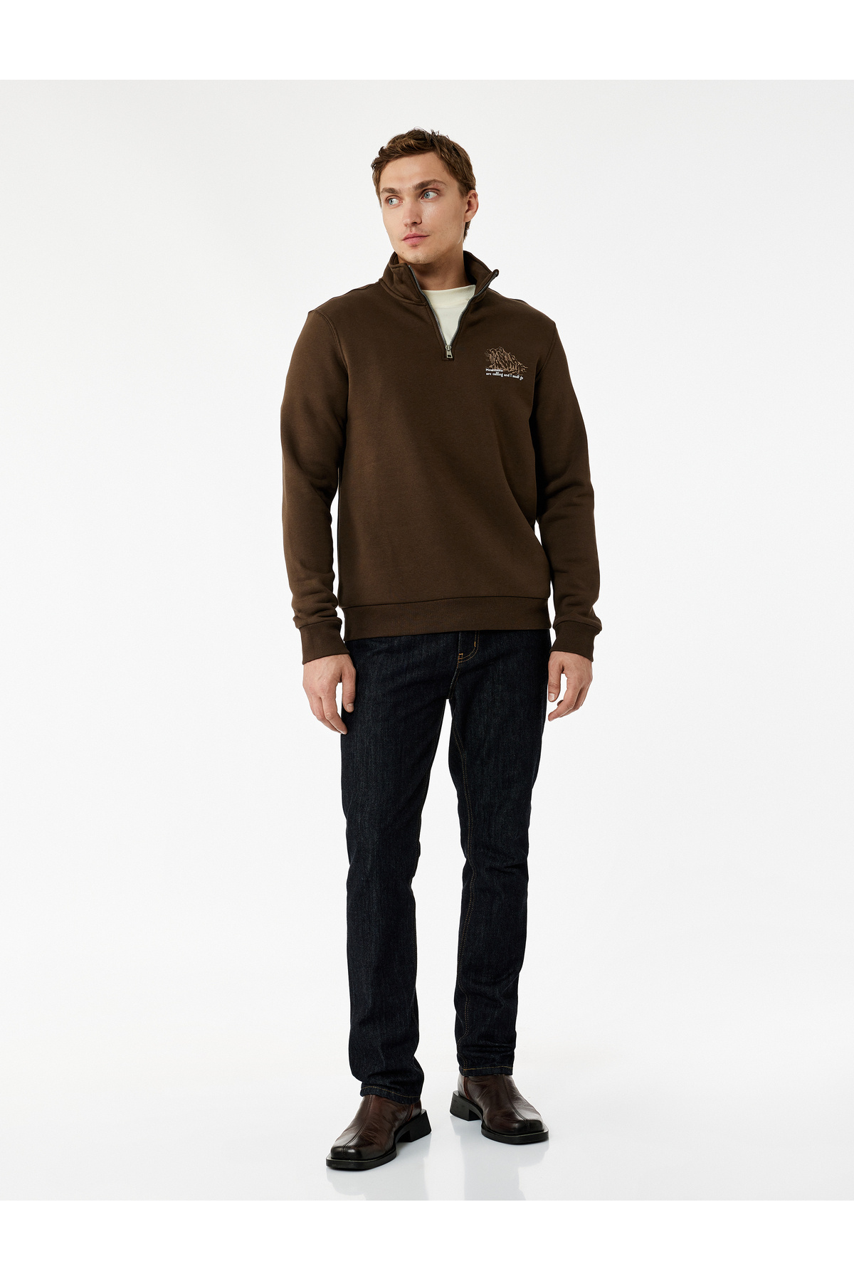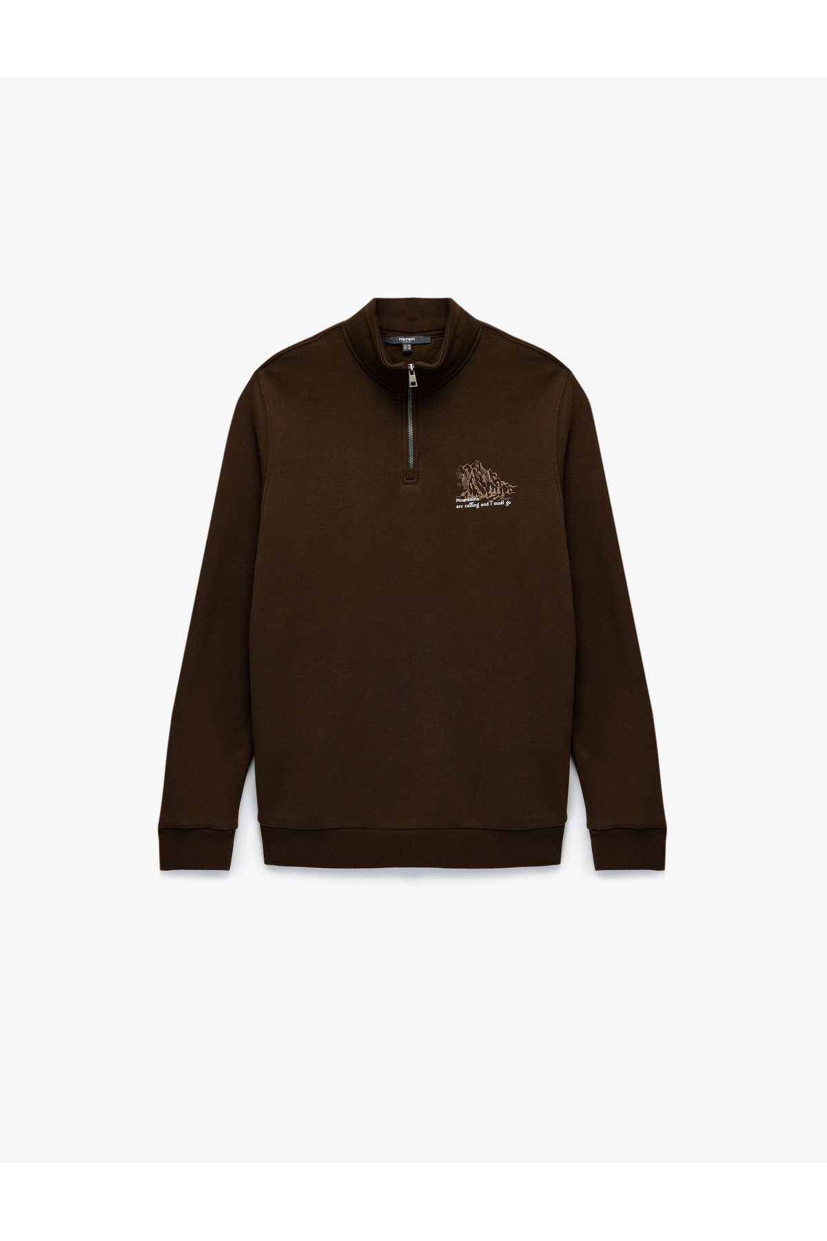 Şardonlu Uzun Kollu Baskılı Yarım Fermuarlı Sweatshirt Şardonlu Uzun Kollu Baskılı Yarım Fermuarlı Sweatshirt 6WAM70035MK 2XL