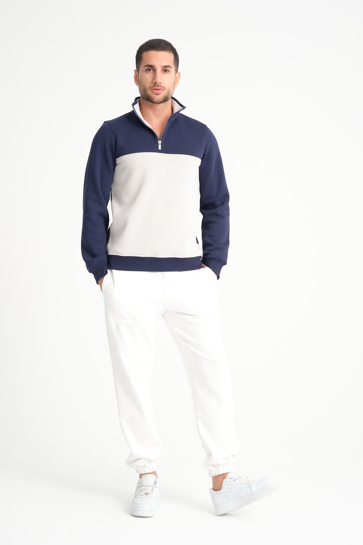 Erkek Polo Yaka Dokulu Pamuklu Sweatshirt Lacivert - 25K 1099 Erkek Polo Yaka Dokulu Pamuklu Sweatshirt Lacivert - 25K 1099 422617092 2XL