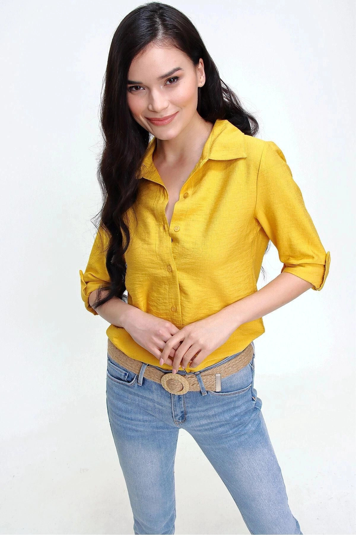 Kadın Hardal Klasik Yaka Uzun Kol Regular Kesim Standart Boy Gömlek(Özel Kumaş) Kadın Hardal Klasik Yaka Uzun Kol Regular Kesim Standart Boy Gömlek(Özel Kumaş) 700-3043 42