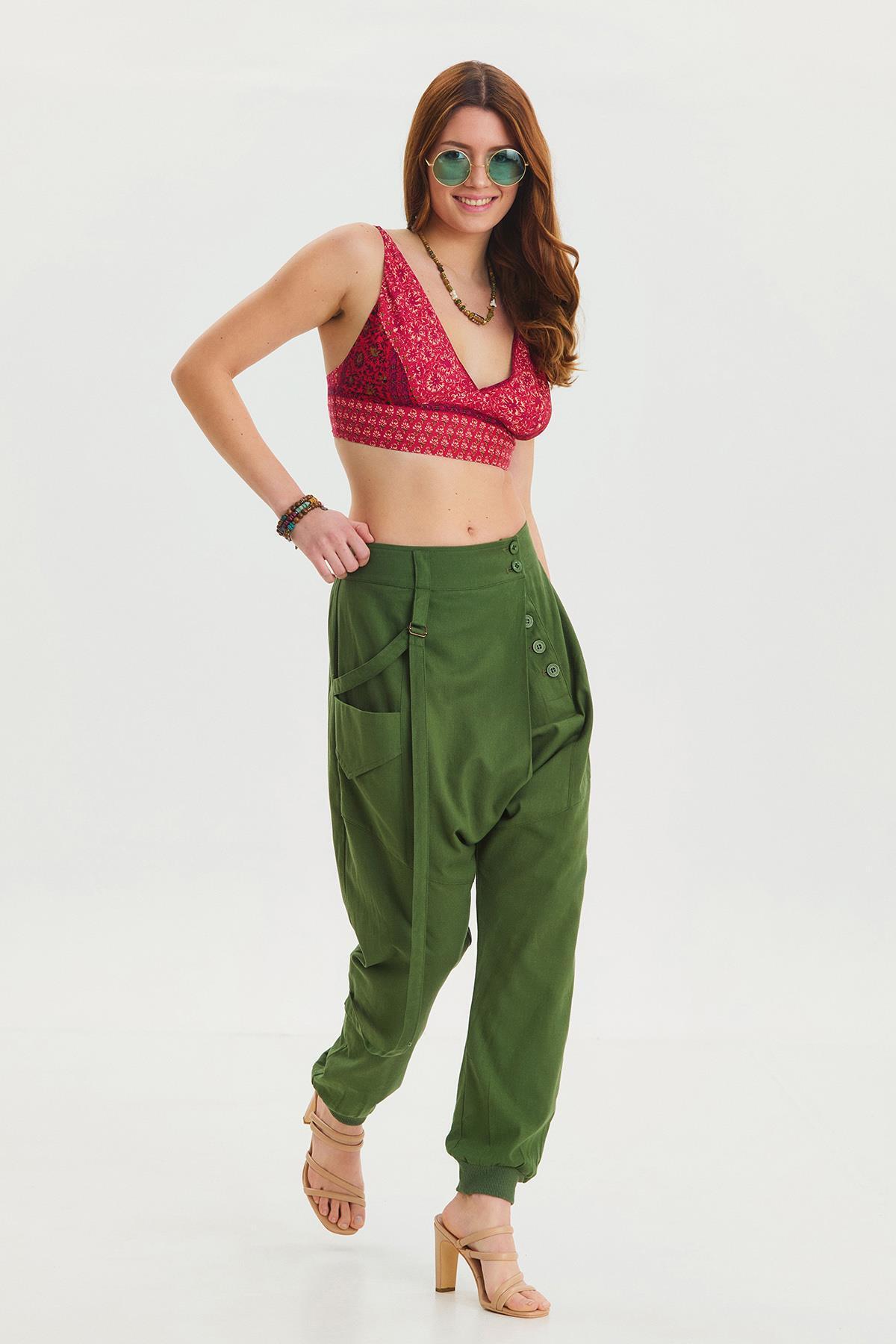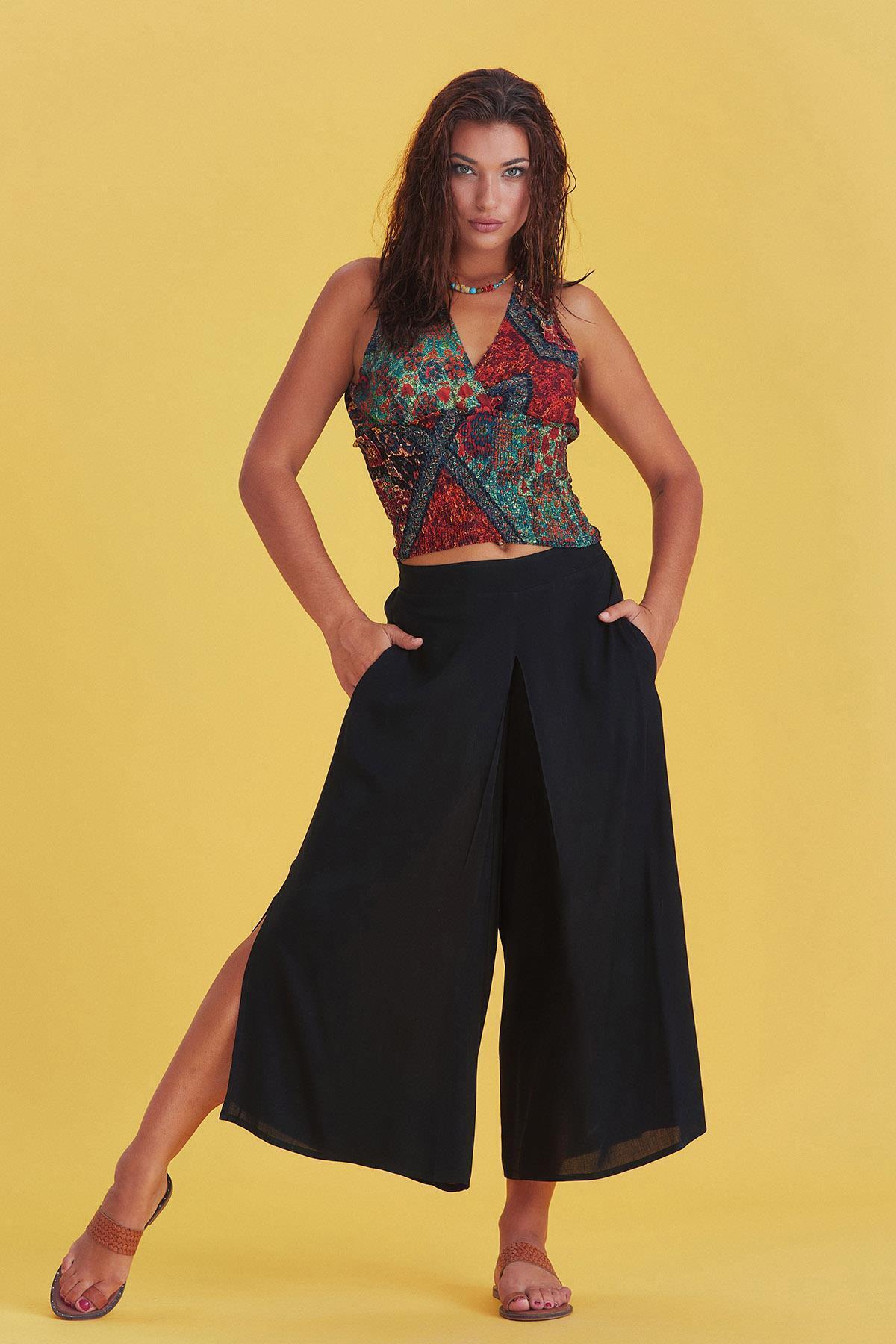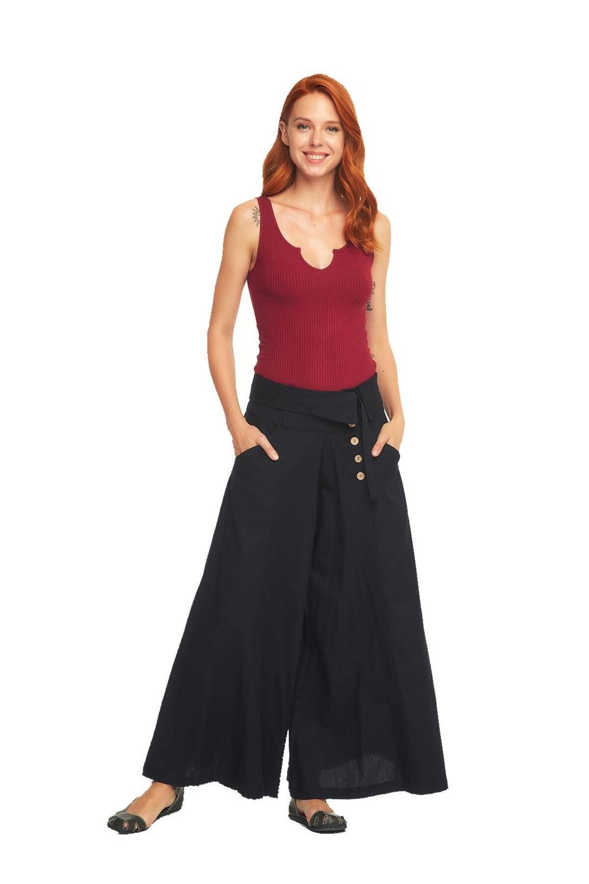 Düşük Bel Düğmeli Bol Paça Pantolon Düşük Bel Düğmeli Bol Paça Pantolon ULOS19SSPNTW.025_001 L