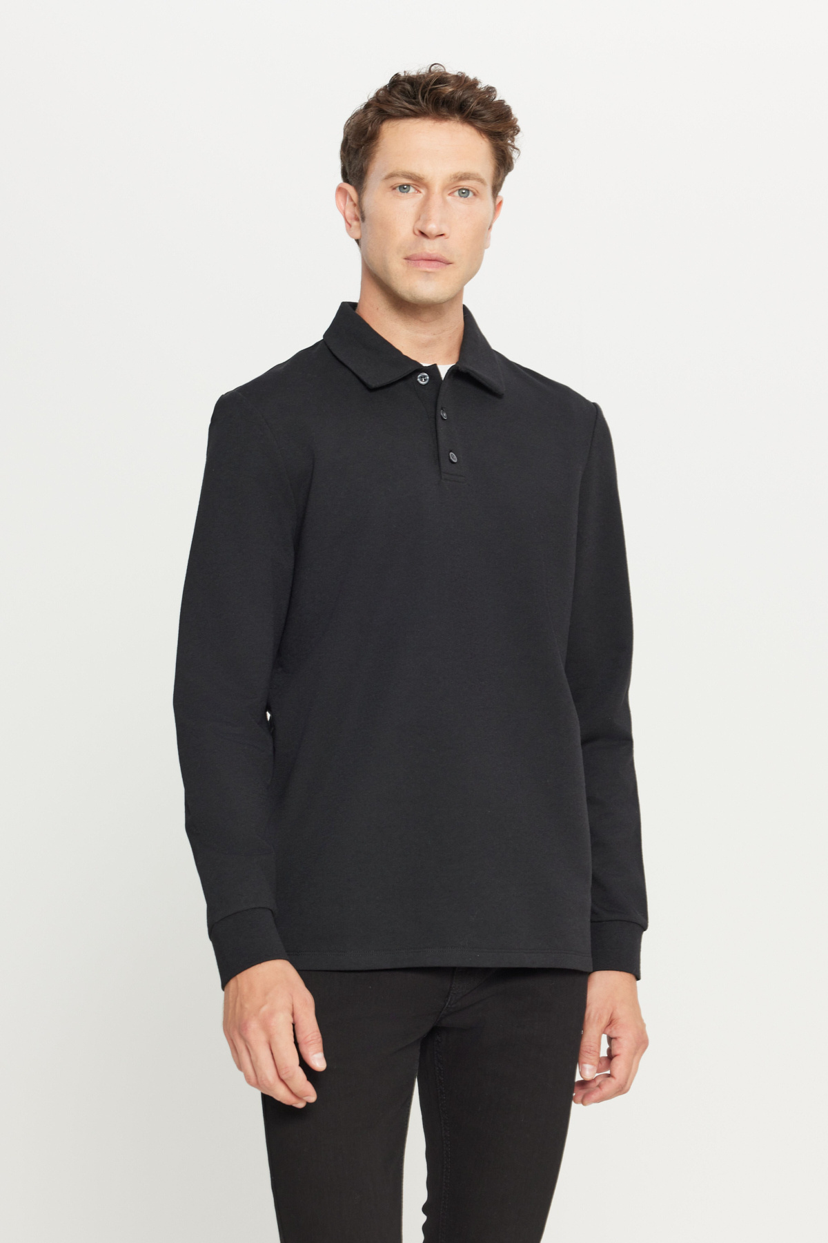 Erkek Siyah Pamuklu Standart Fit Normal Kesim Polo Yaka Sweatshirt Erkek Siyah Pamuklu Standart Fit Normal Kesim Polo Yaka Sweatshirt ETE052261077 2XL