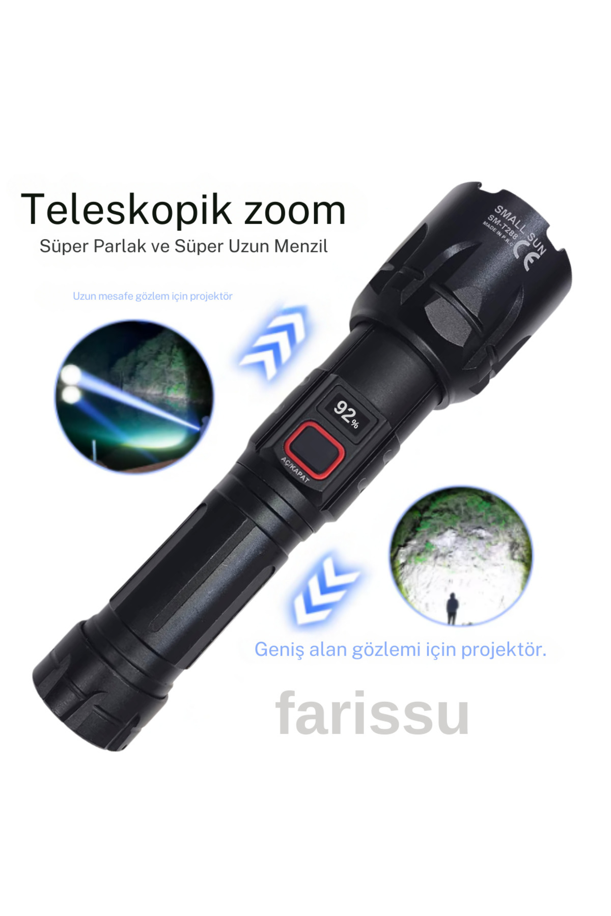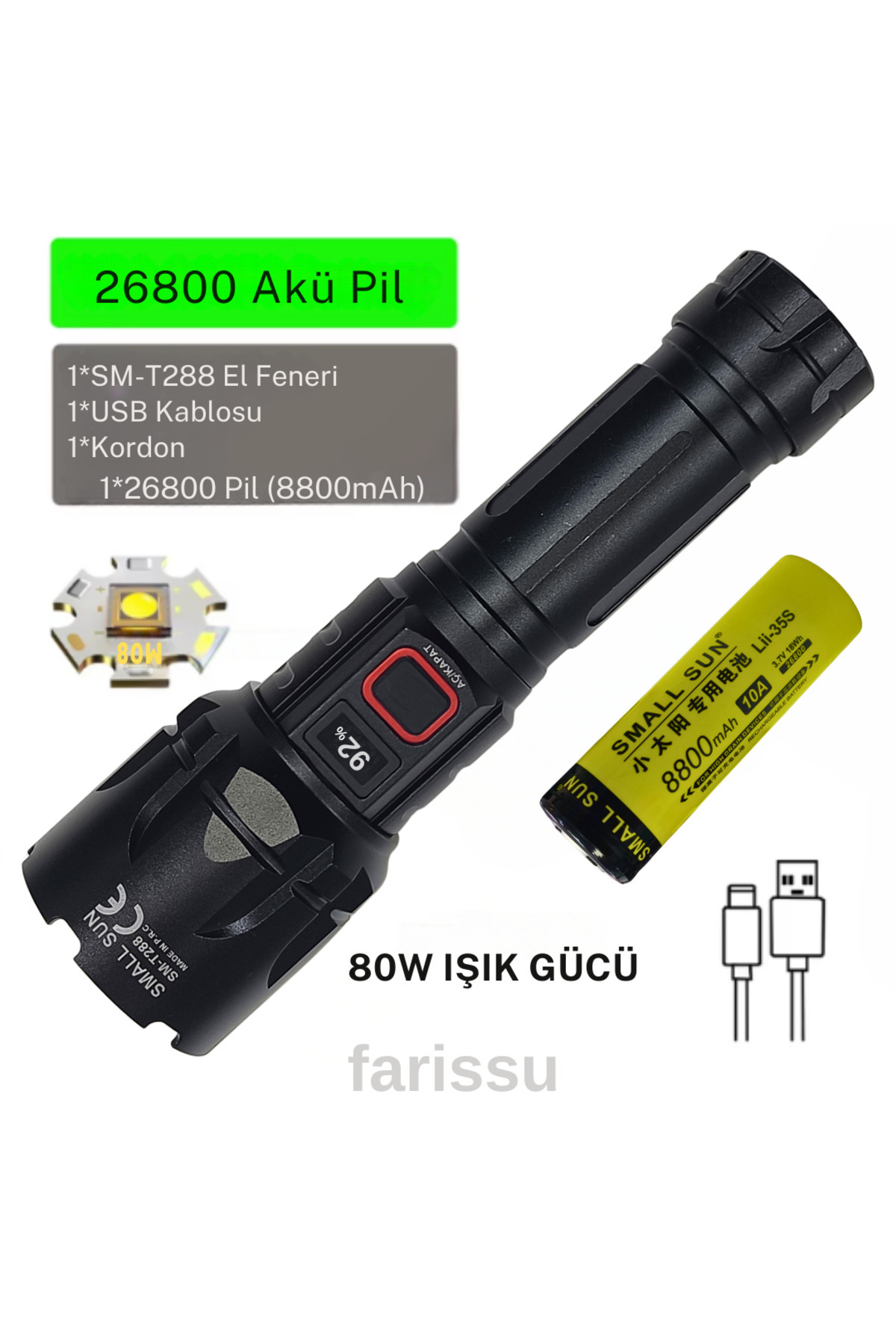 SMALL SUN SM-T288 80W 1000 Lümen 26800 Model 8800 mah pil 1 ile 1,5 Km Menzilli Şarjlı El Feneri SMALL SUN SM-T288 80W 1000 Lümen 26800 Model 8800 mah pil 1 ile 1,5 Km Menzilli Şarjlı El Feneri sm-t288 تک سایز