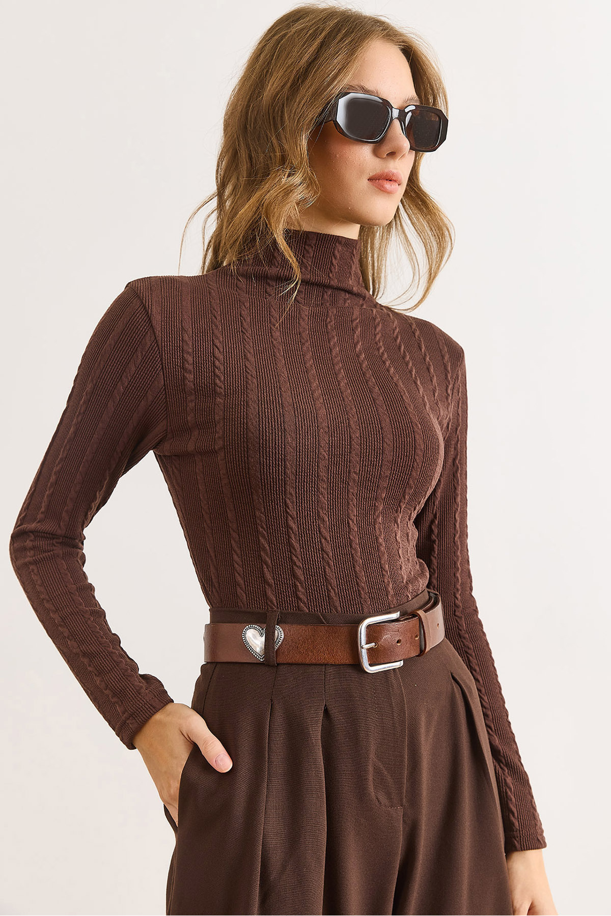Kadın Kahverengi Düğme Detaylı Fitilli Ottoman Bluz BLZ-19003085 Kadın Kahverengi Düğme Detaylı Fitilli Ottoman Bluz BLZ-19003085 L