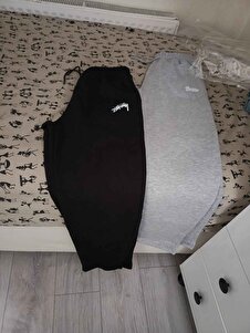 Baskılı Siyah 3 iplik Baggy Şardonlu Eşofman Altı Baskılı Siyah 3 iplik Baggy Şardonlu Eşofman Altı BaggyEşofman 2XL