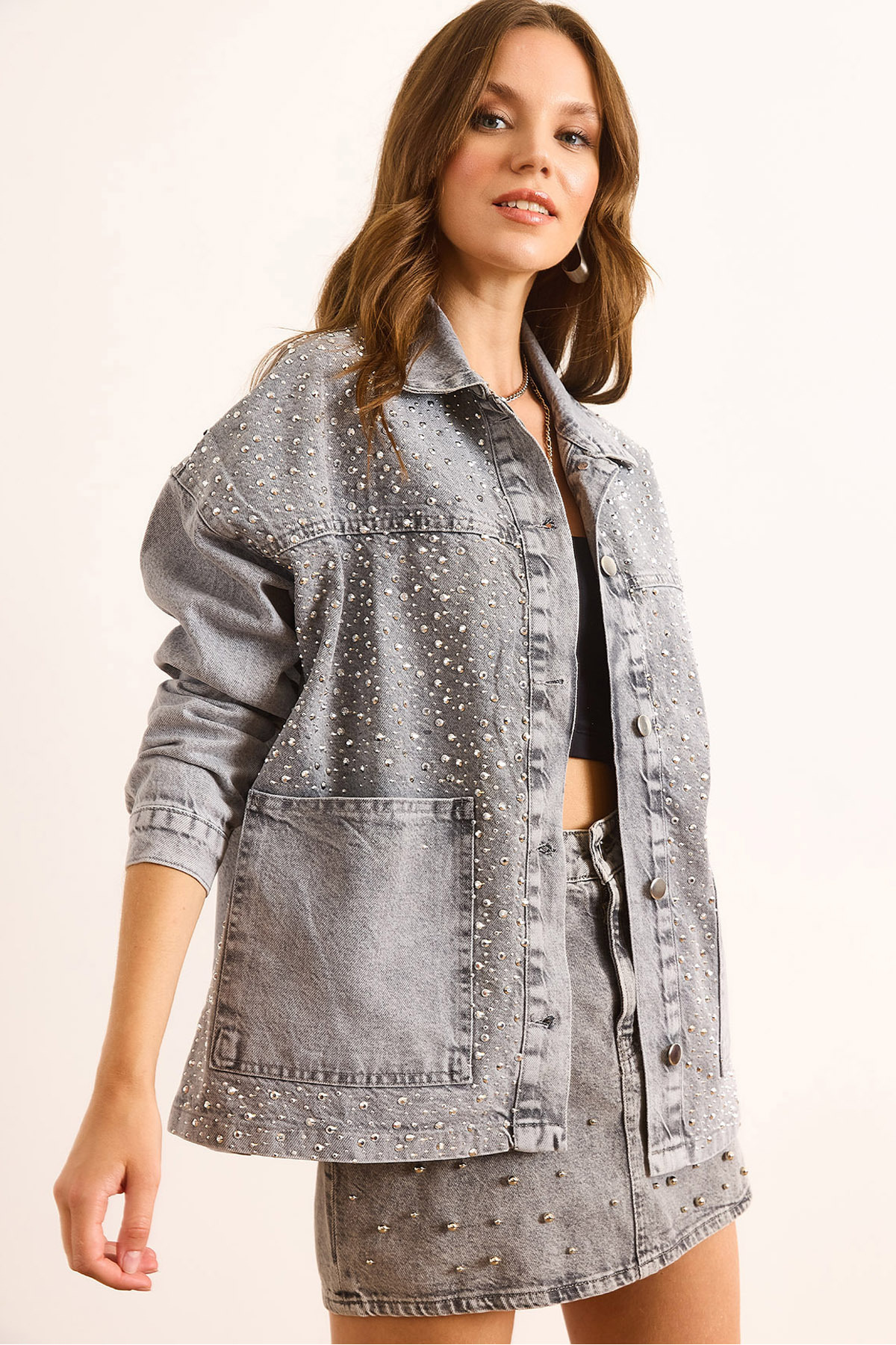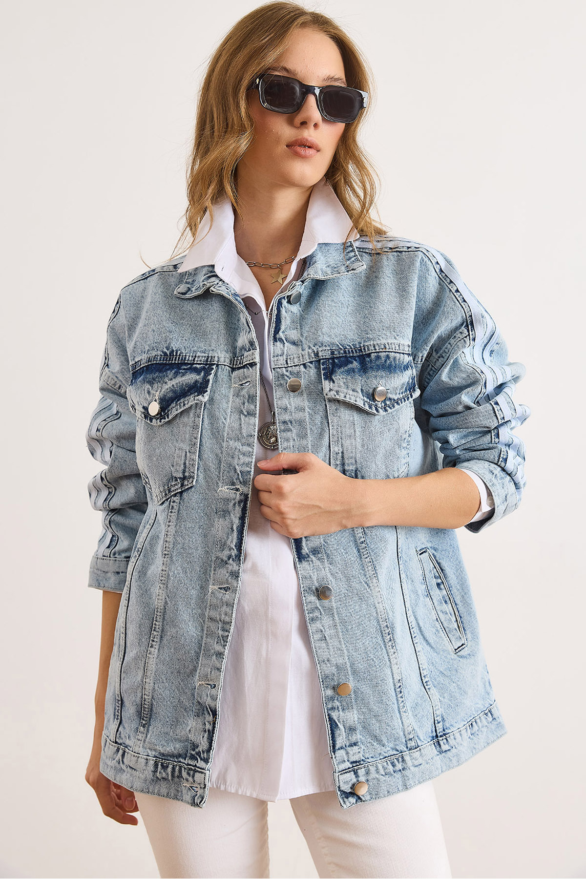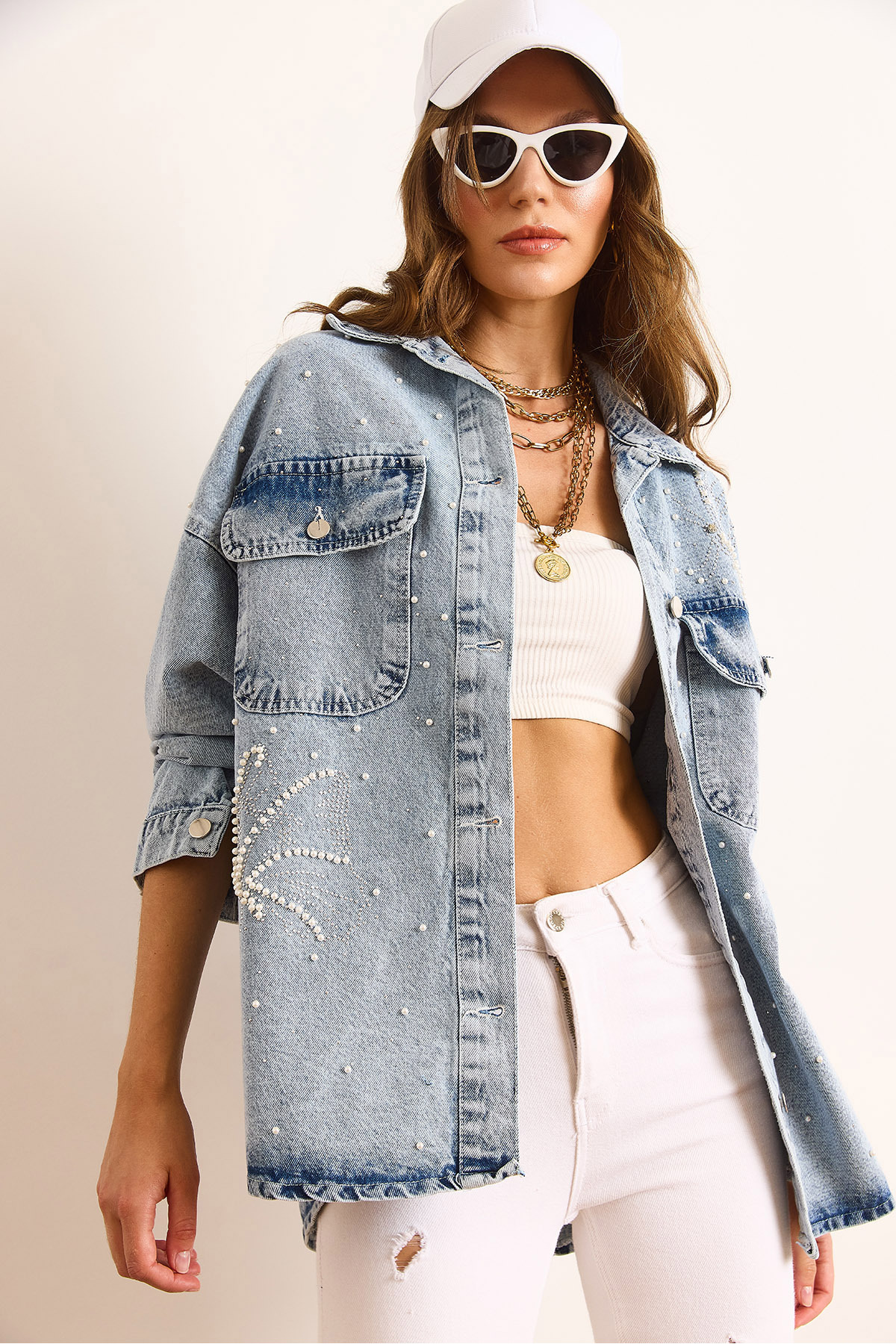 Kadın Açık Mavi İnci Detaylı Çift Cepli Denim Gömlek Ceket CKT-19000453 Kadın Açık Mavi İnci Detaylı Çift Cepli Denim Gömlek Ceket CKT-19000453 L