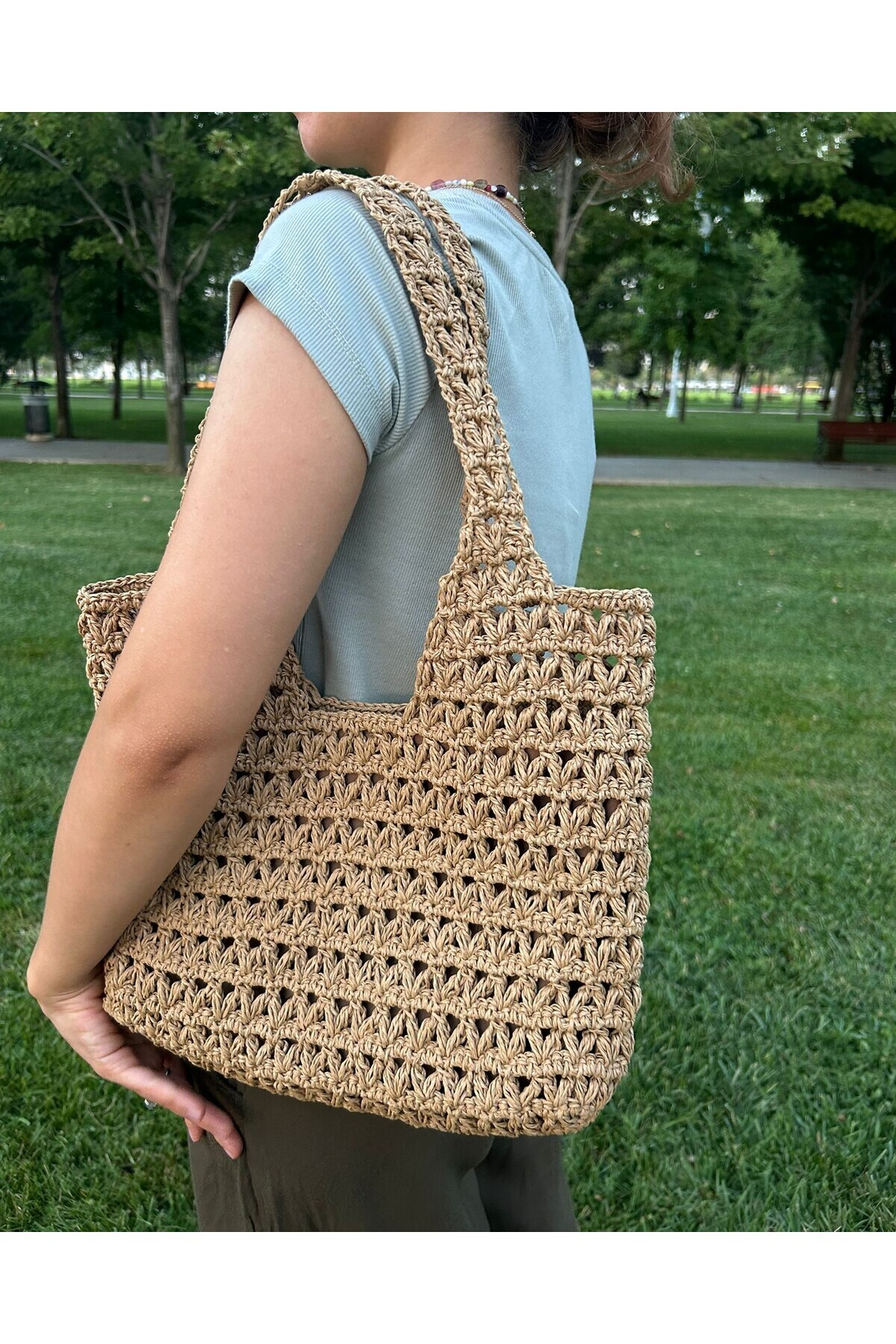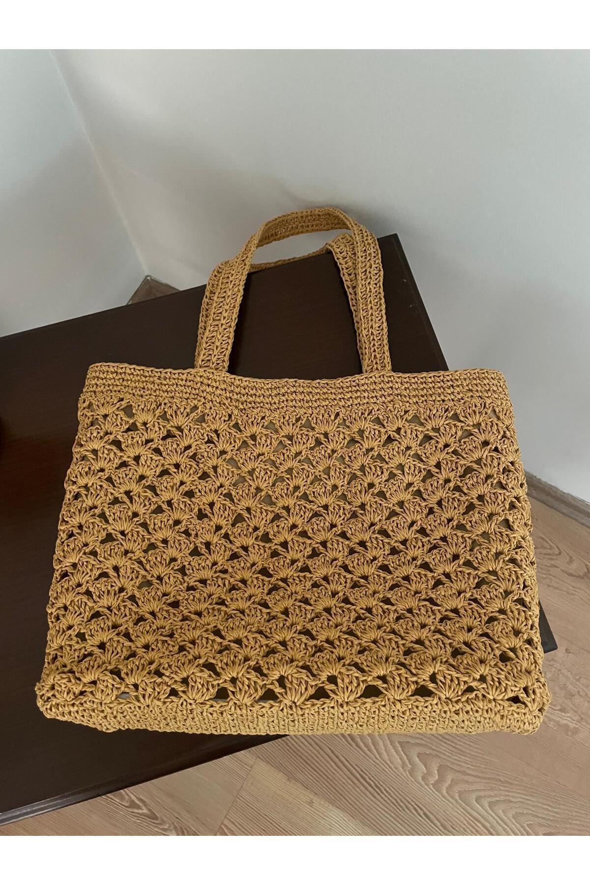 Koyu Hasır Rengi, El Yapımı Kağıt İp Örgü Çanta, Günlük Askılı Omuz Çantası Astarlı, Cepli, Çıtçıtlı Koyu Hasır Rengi, El Yapımı Kağıt İp Örgü Çanta, Günlük Askılı Omuz Çantası Astarlı, Cepli, Çıtçıtlı ELMÇ007 Standart