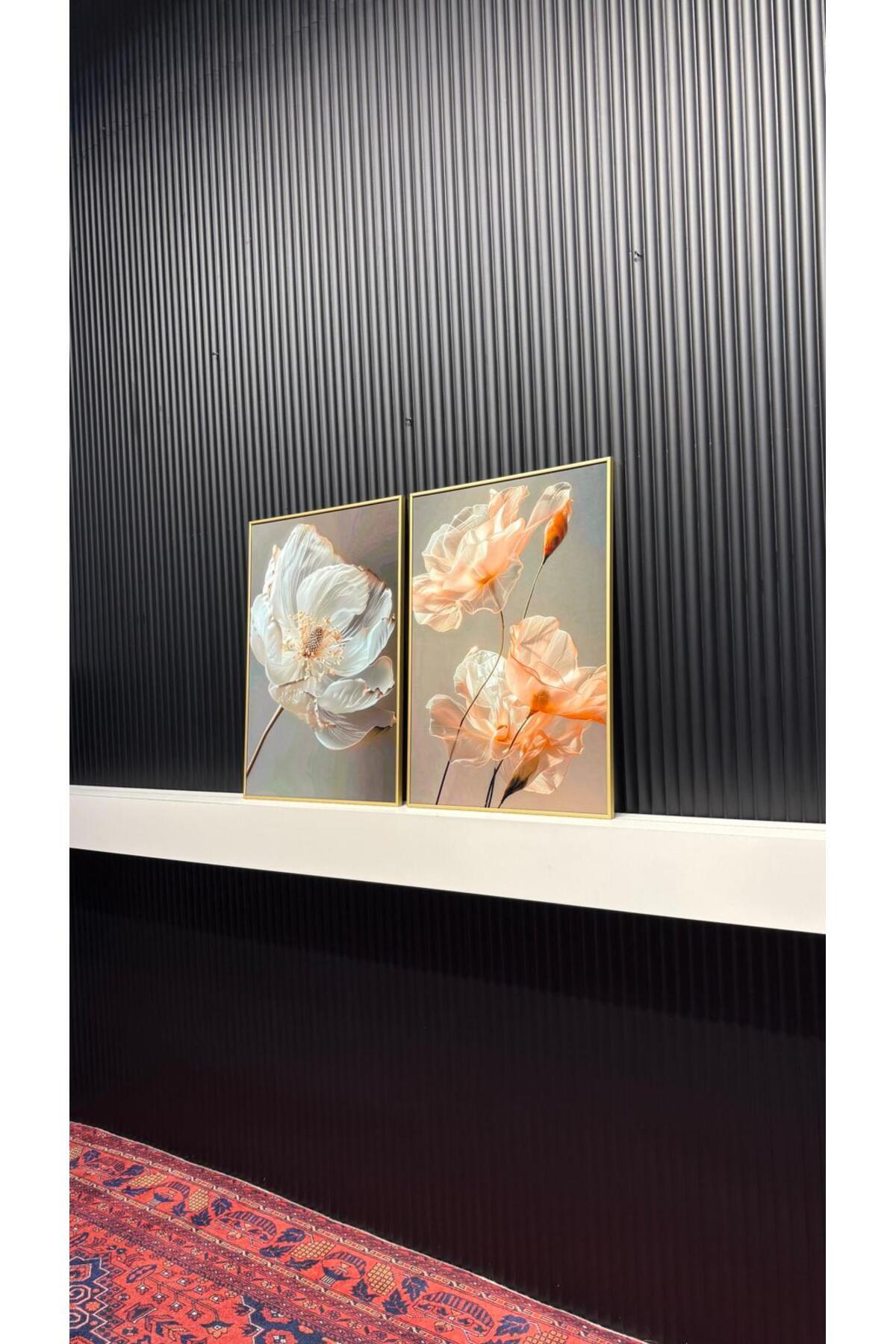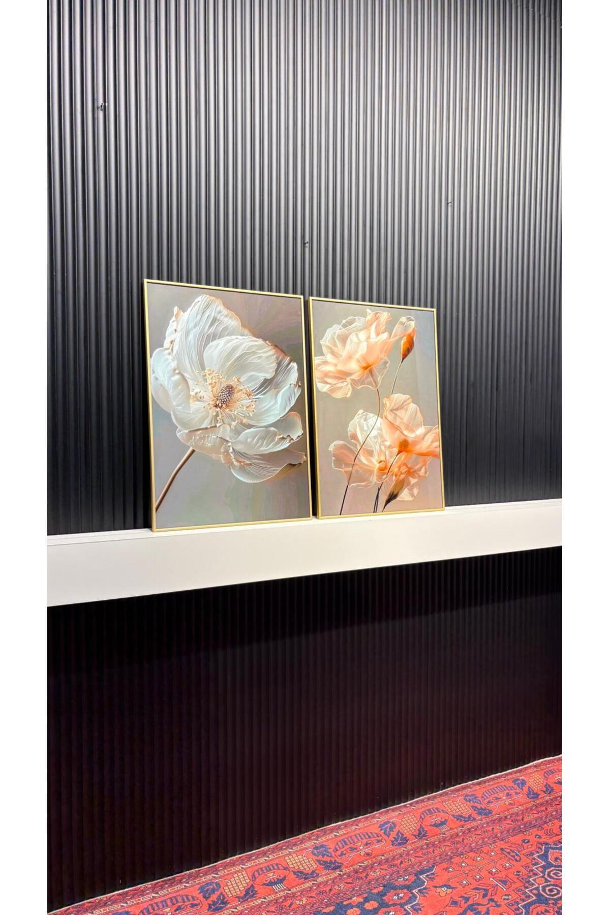 Işıltı Çiçek - Dijital Baskılı Gold Metal Çerçeveli Gerçek Camlı 2'li Dekoratif Tablo Işıltı Çiçek - Dijital Baskılı Gold Metal Çerçeveli Gerçek Camlı 2'li Dekoratif Tablo ışıltıçiçekg2 70 x 100