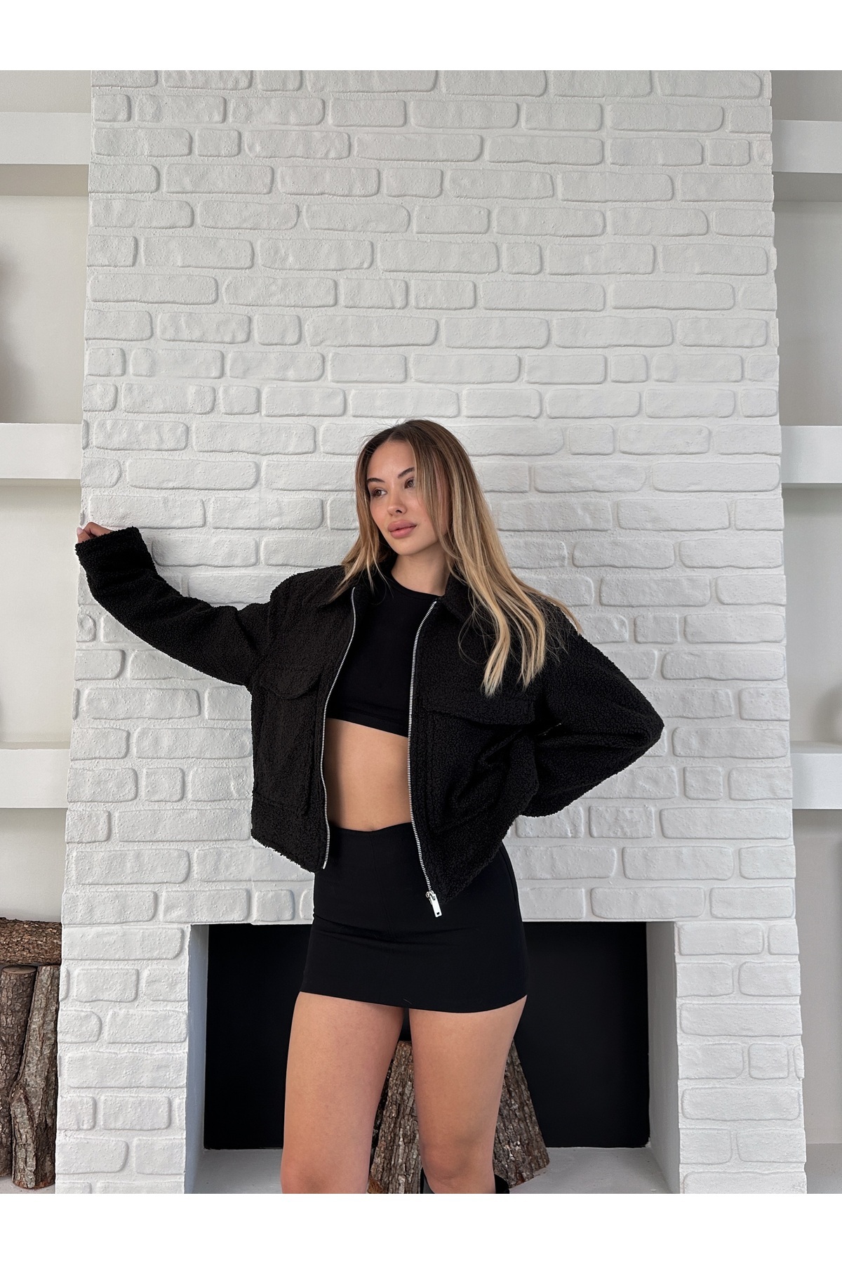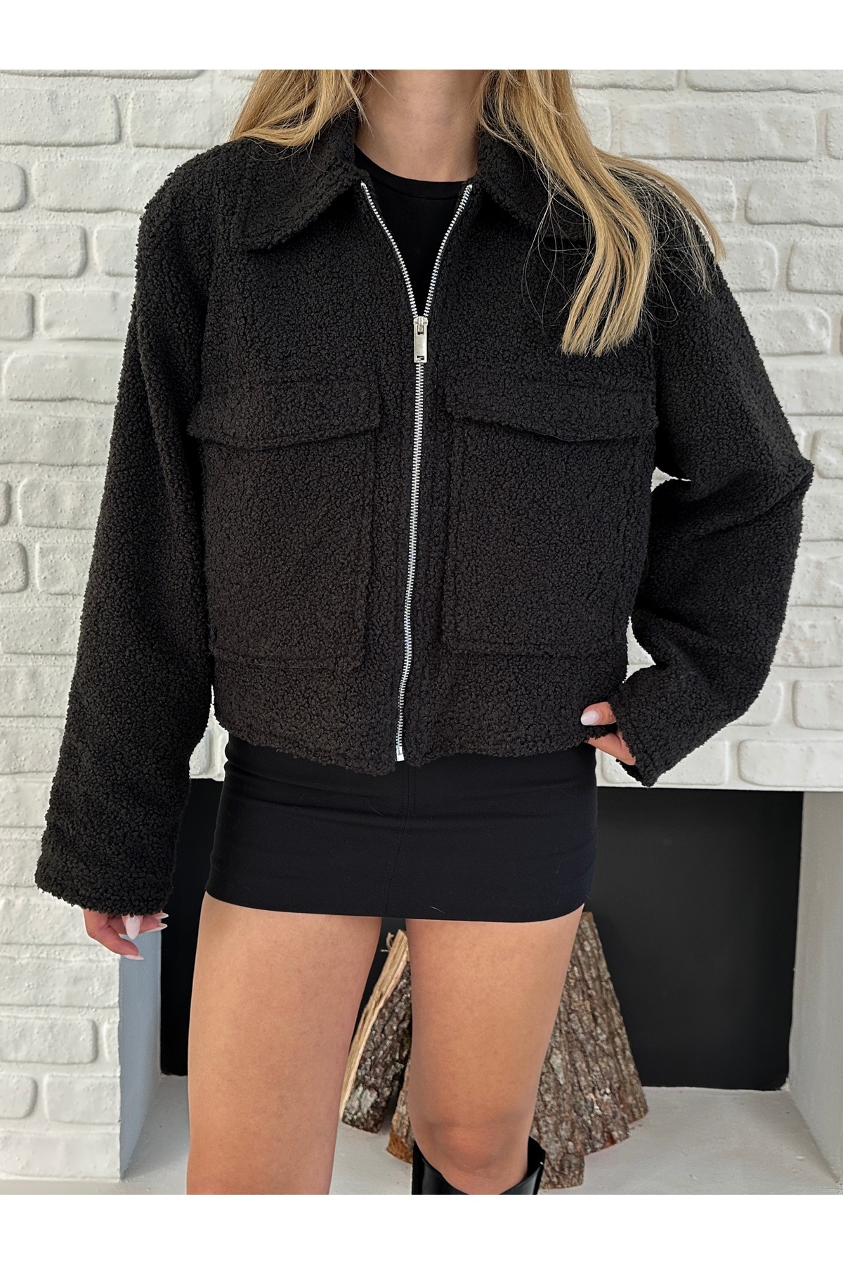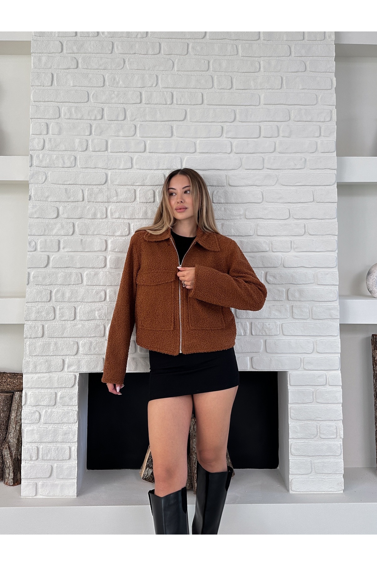 Kadın Fermuarlı Kısa Buklet Ceket Kadın Fermuarlı Kısa Buklet Ceket SND20258010 L