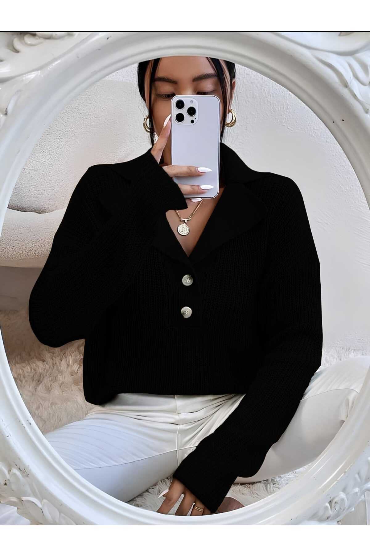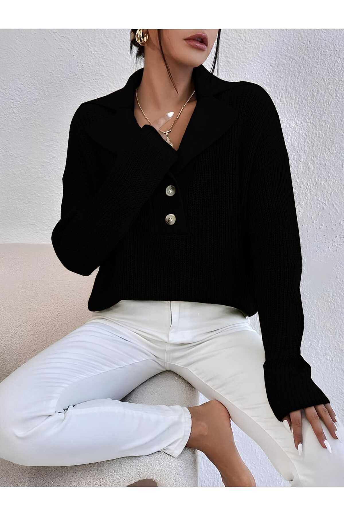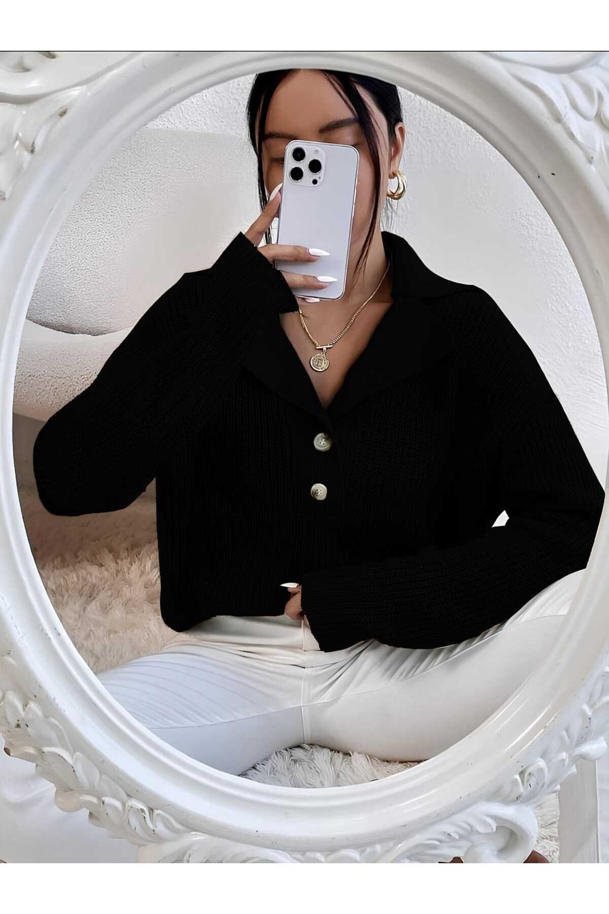 Düğmeli Ceket Yaka Rahat Kalıp Kadın Triko Kazak Düğmeli Ceket Yaka Rahat Kalıp Kadın Triko Kazak DRS90 2XL