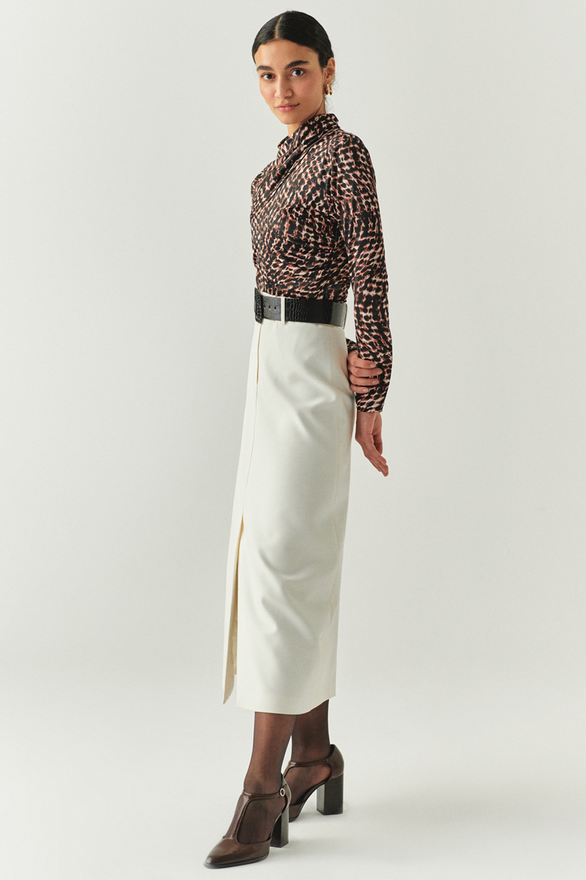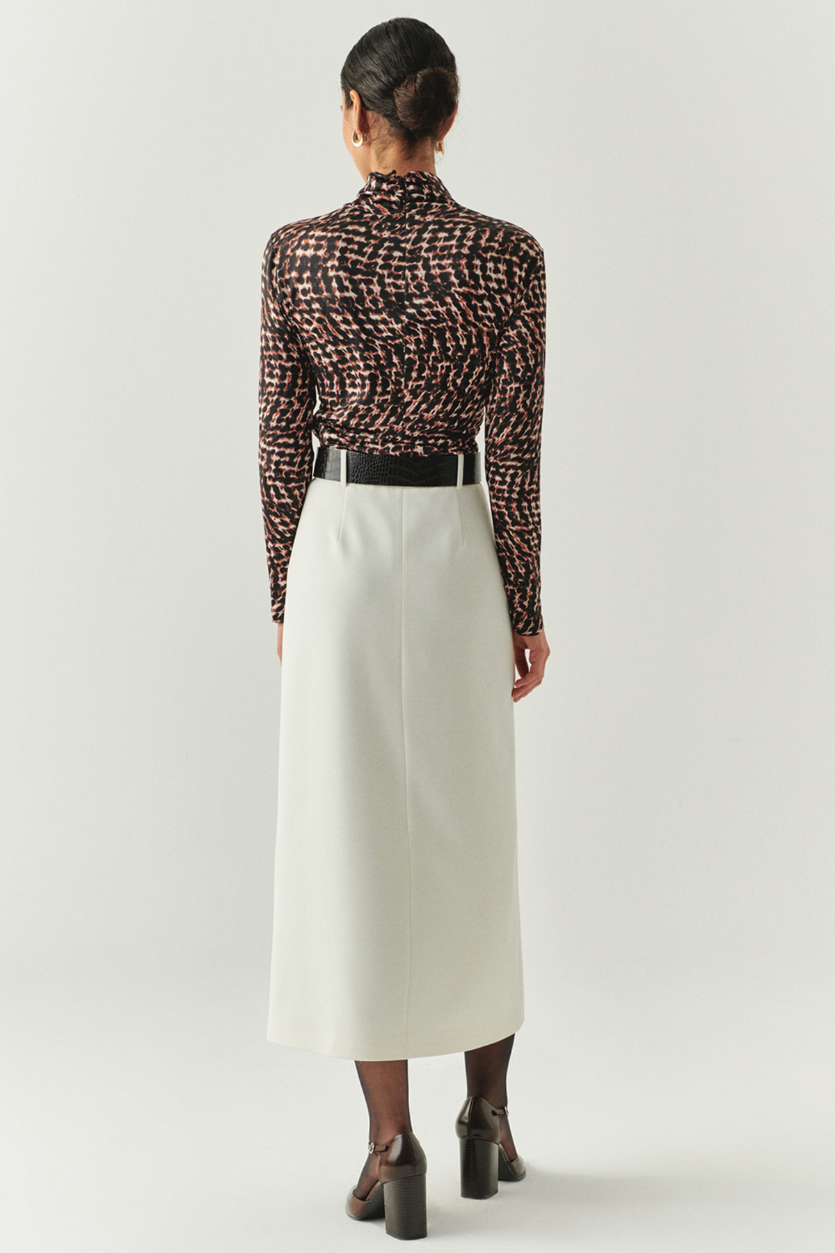 Önü Yırtmaçlı Kemerli Astarlı Regular Midi Etek Önü Yırtmaçlı Kemerli Astarlı Regular Midi Etek E25K05115009 42