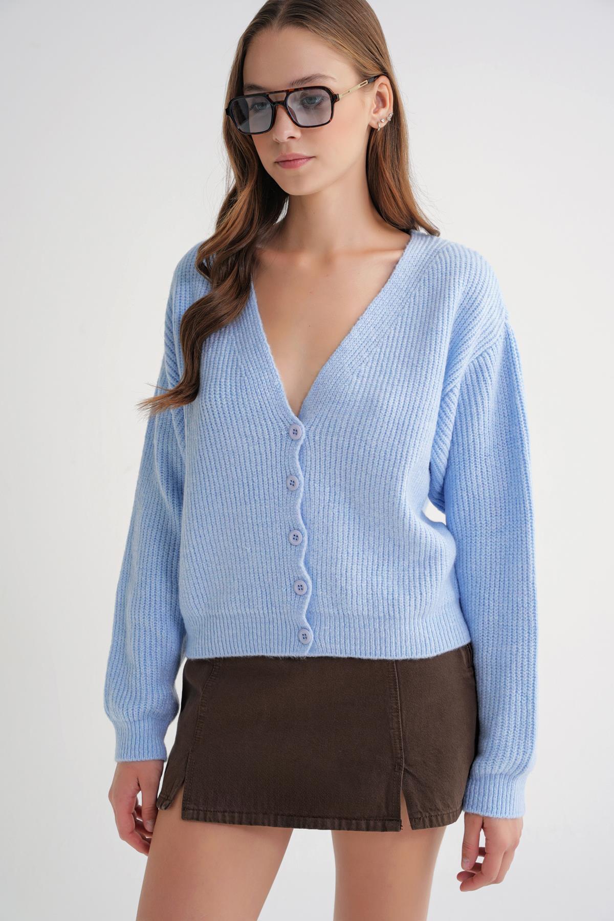 6943 Kadın V Yaka Selanik Hırka Bebe Mavi 6943 Kadın V Yaka Selanik Hırka Bebe Mavi K25HRK6943 Standart
