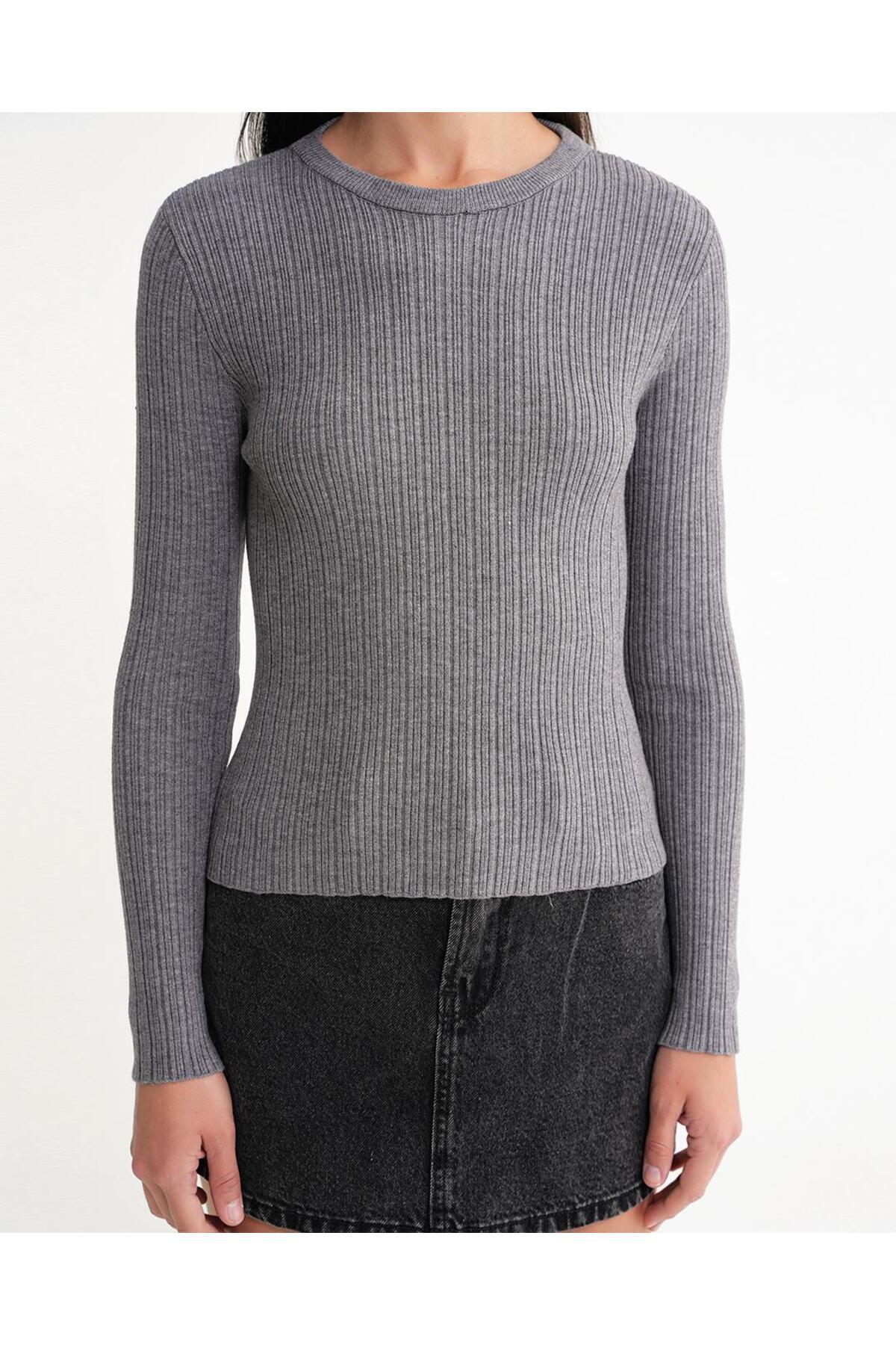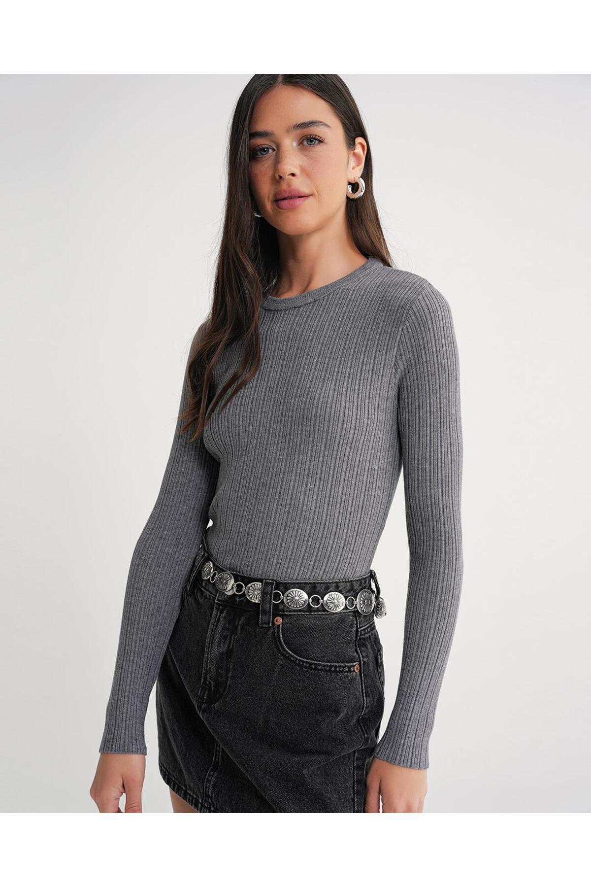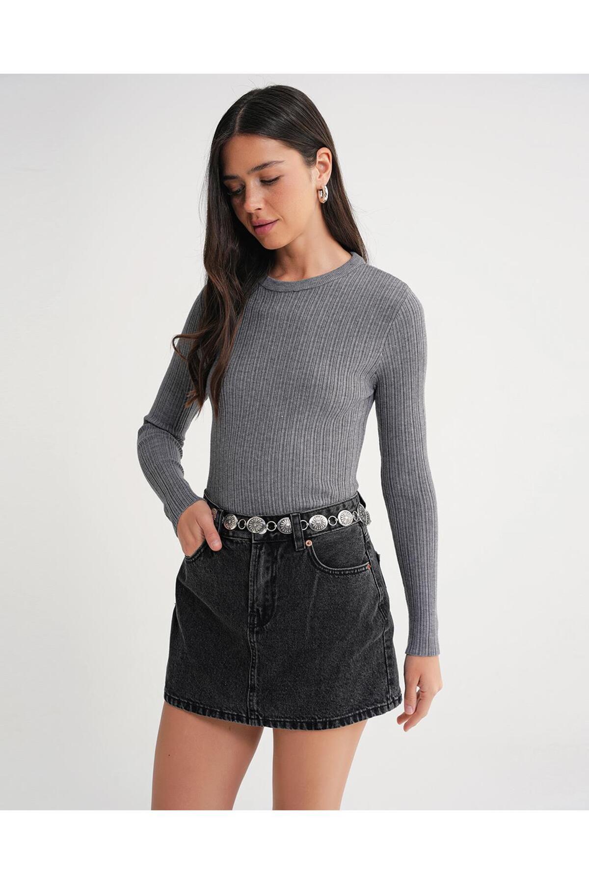 6938 Kadın Bisiklet Yaka Fitilli Triko Body Gri 6938 Kadın Bisiklet Yaka Fitilli Triko Body Gri Y25KZK6938 L