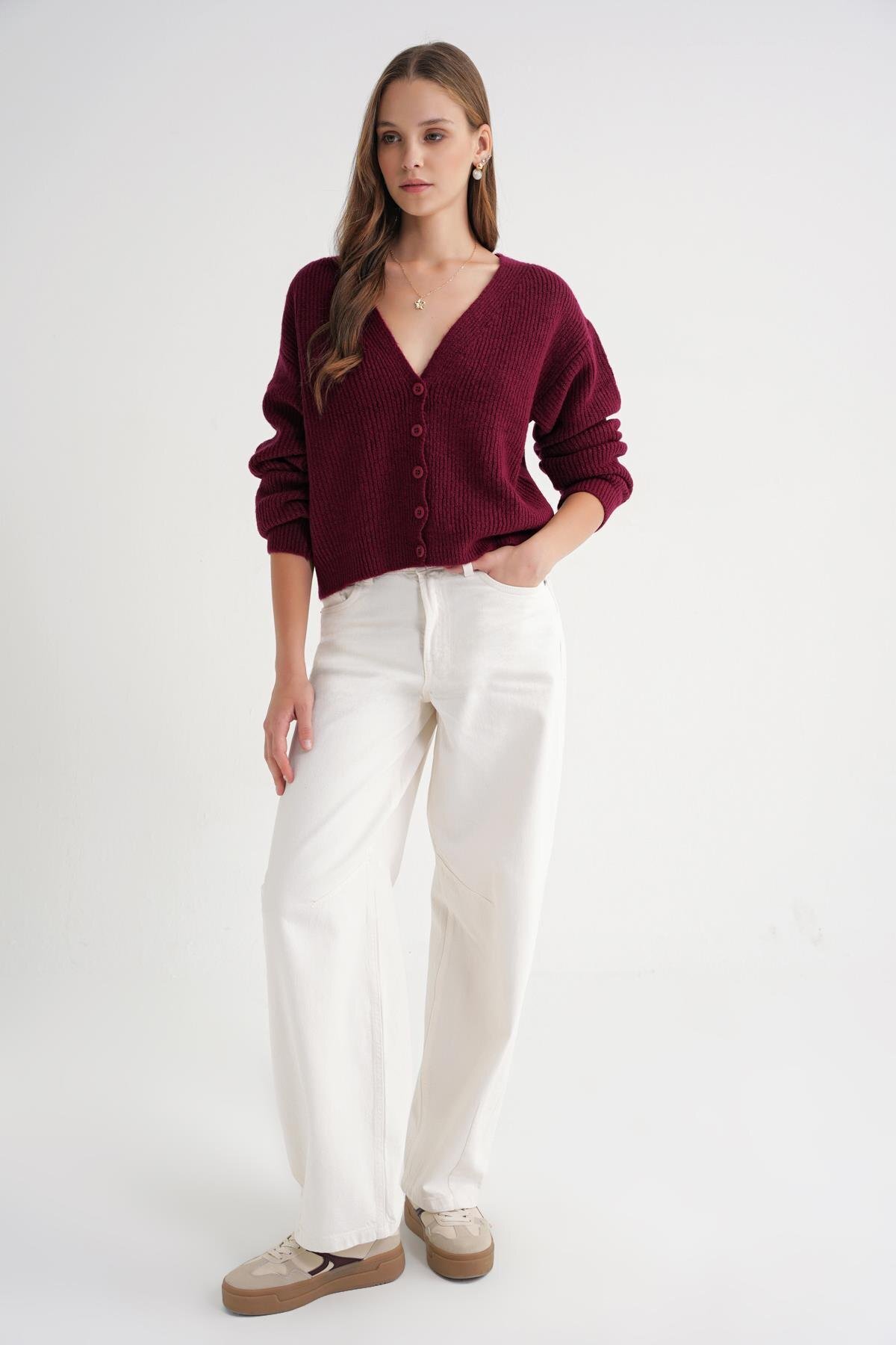 6943 Kadın V Yaka Selanik Hırka Bordo 6943 Kadın V Yaka Selanik Hırka Bordo K25HRK6943 Standart
