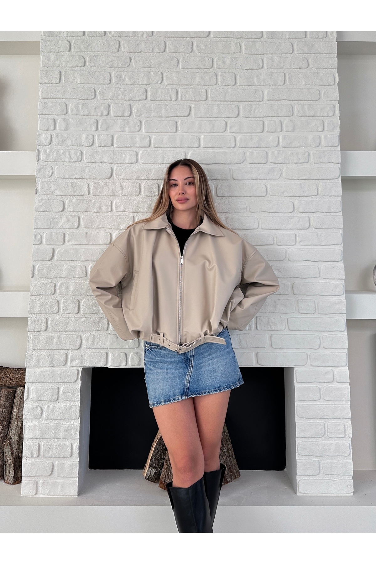 Yeni Sezon Oversize Kemerli Bomber Ceket Yeni Sezon Oversize Kemerli Bomber Ceket ET823421035 XL