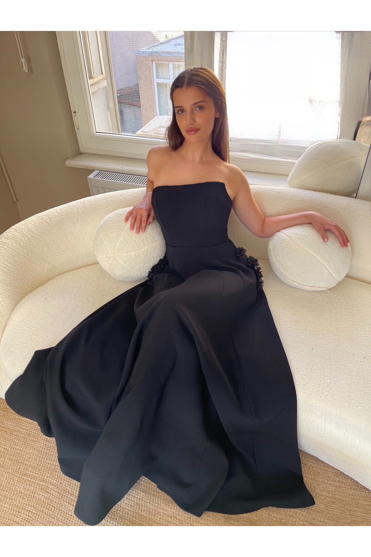 Krep Uzun Kloş Cep Detay Üzeri Çiçek İşlemeli Abiye Elbise Krep Uzun Kloş Cep Detay Üzeri Çiçek İşlemeli Abiye Elbise SER3010 42