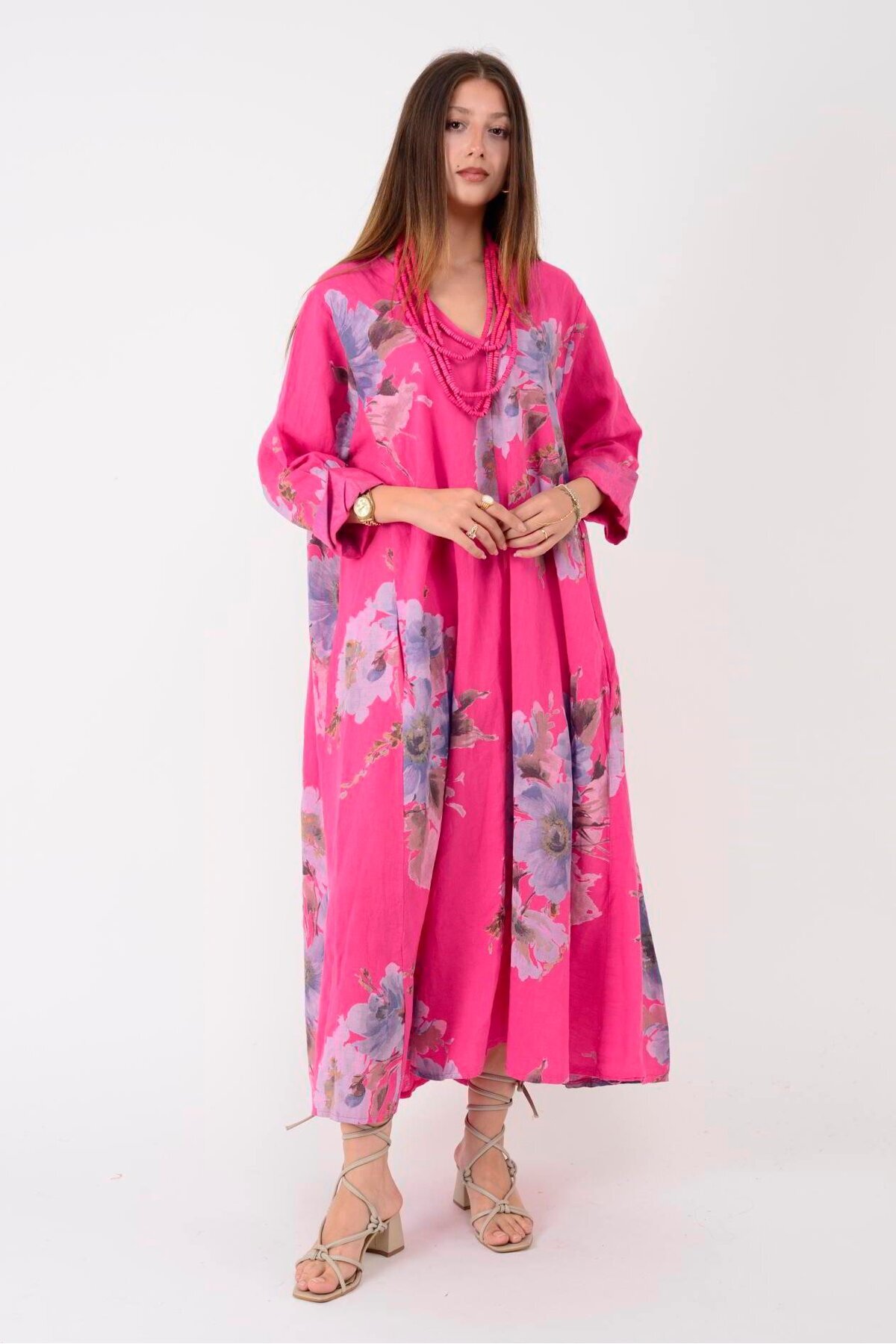 102181 LADI BATİK ÇİÇEK DESEN V YAKA KETEN ELBİSE 102181 LADI BATİK ÇİÇEK DESEN V YAKA KETEN ELBİSE 25Y.T.ELB.00409-41 0