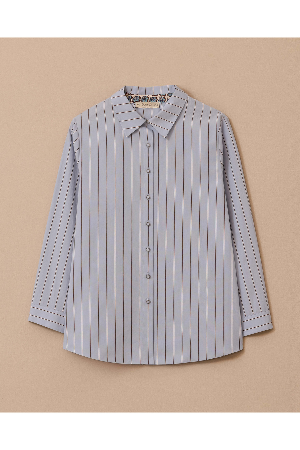 Büyük Beden Çizgili Manşet Detaylı Gömlek Büyük Beden Çizgili Manşet Detaylı Gömlek 10002521514003 50