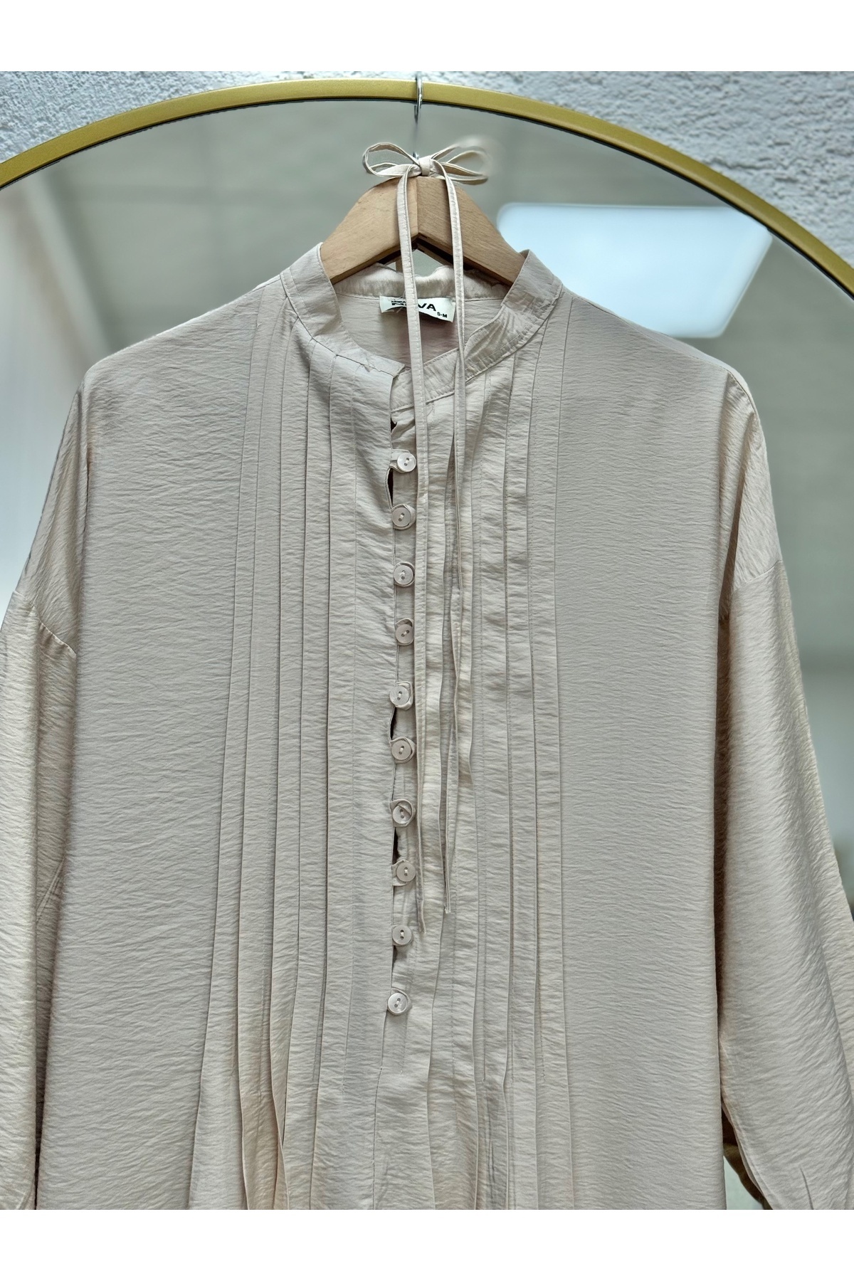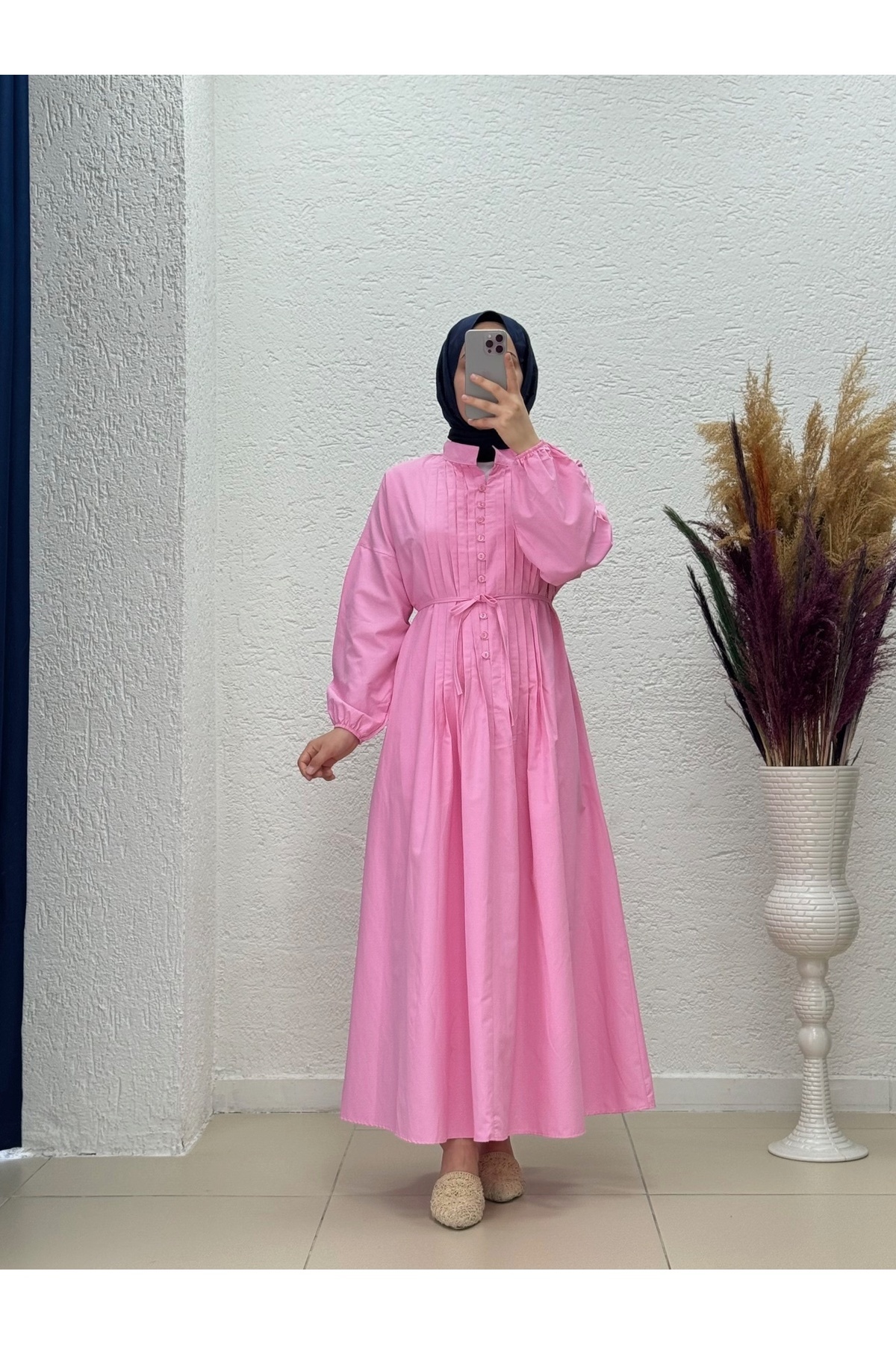 Maruna Poplin Pileli Düğmeli Elbise-NA2404 Taş Maruna Poplin Pileli Düğmeli Elbise-NA2404 Taş HAS25YEbr00000563AN L/XL