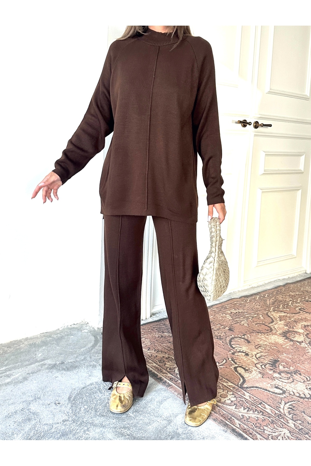 Kadın Yarım Balıkçı Yaka Kazak Pantolon Alt Üst Triko Takım - Kahverengi (YENİ RENK) Kadın Yarım Balıkçı Yaka Kazak Pantolon Alt Üst Triko Takım - Kahverengi (YENİ RENK) 0021 Standart
