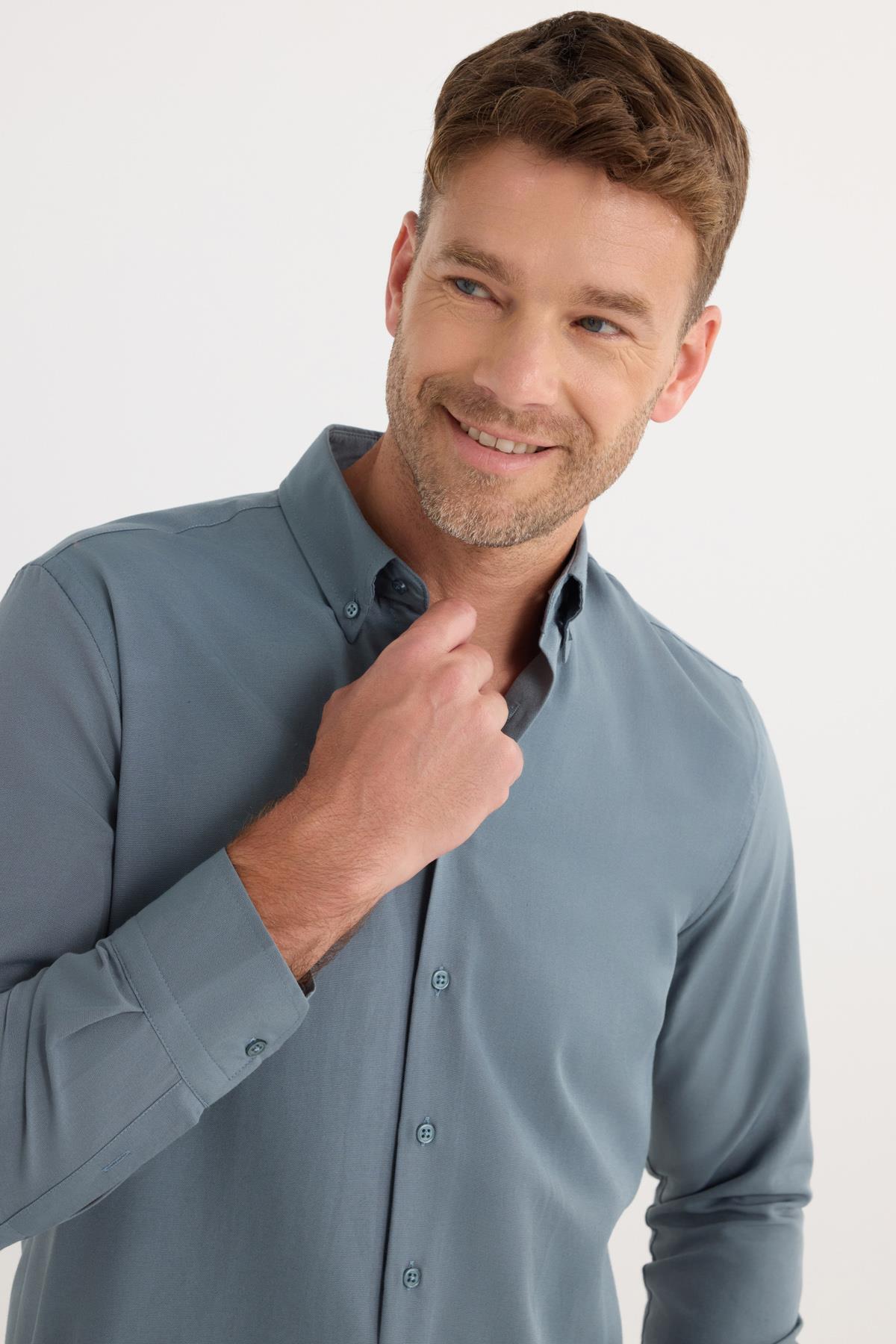 Regular Fit Düğmeli Yaka Pamuklu Kolay Ütü Oxford Düz Erkek Gri Gömlek Regular Fit Düğmeli Yaka Pamuklu Kolay Ütü Oxford Düz Erkek Gri Gömlek RG250001 2XL