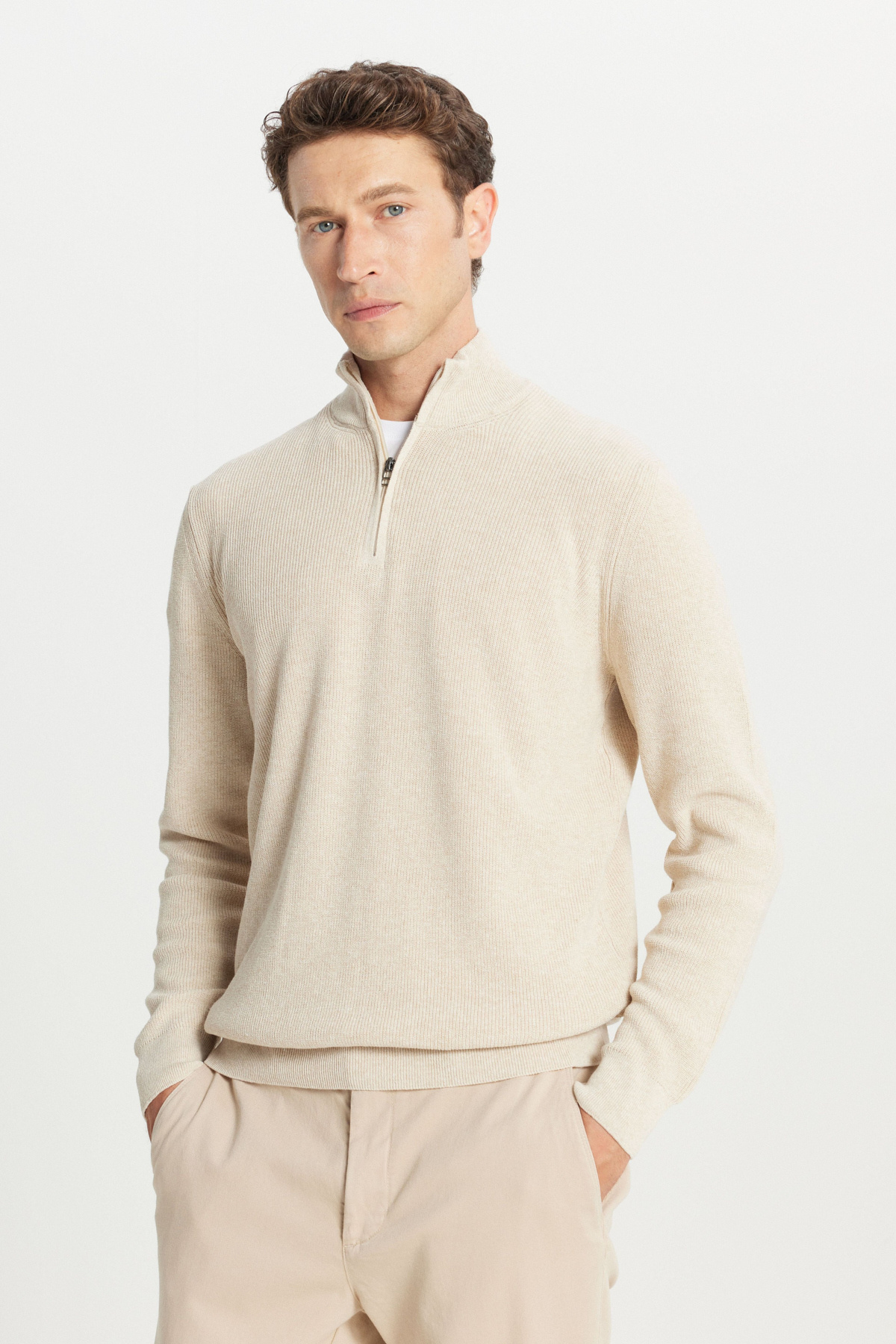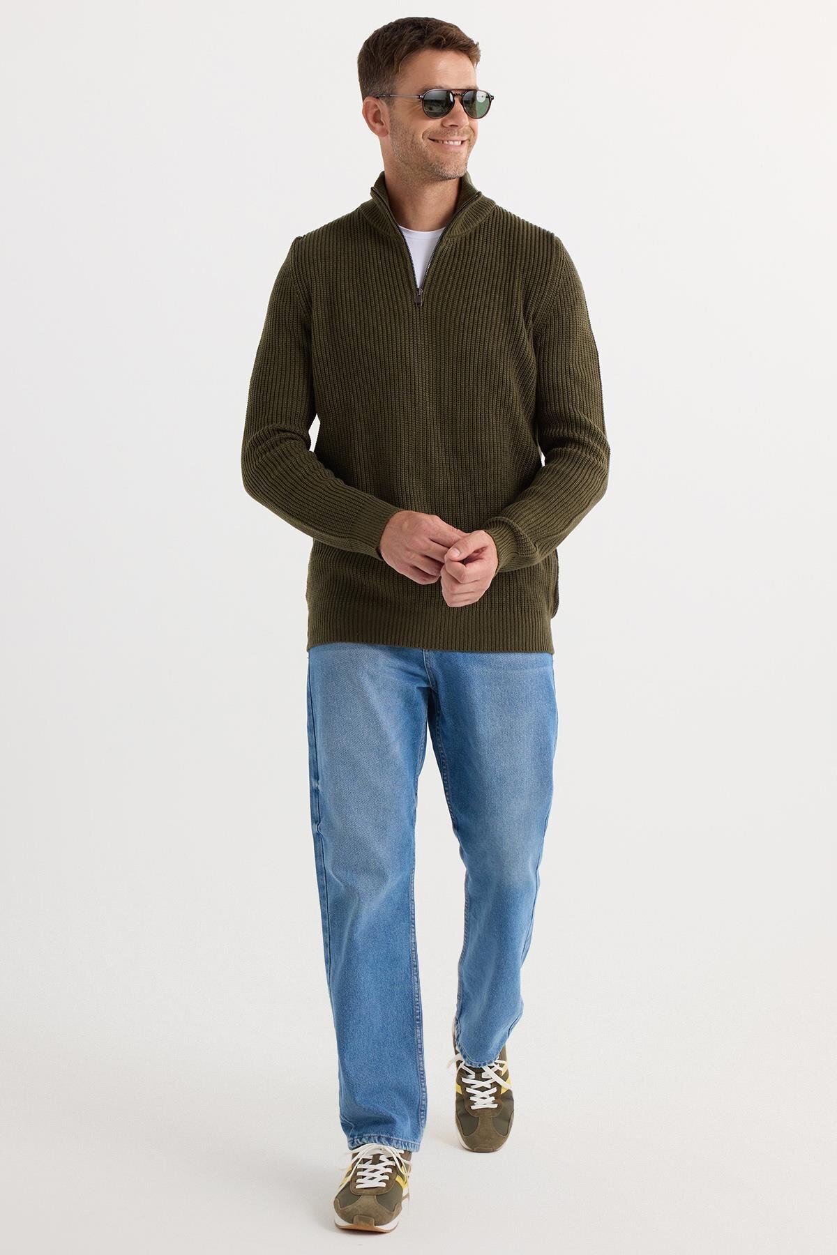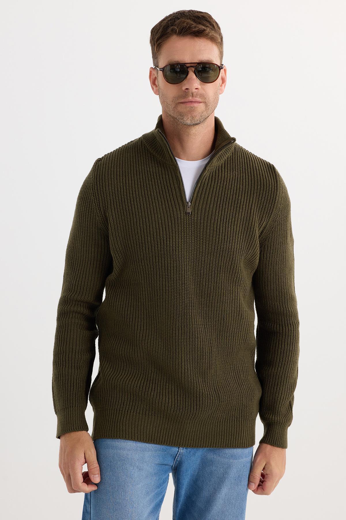 Erkek Slim Fit Dar Kesim Fermuarlı Haki Dik Yaka Triko Kazak Erkek Slim Fit Dar Kesim Fermuarlı Haki Dik Yaka Triko Kazak KZ230013 2XL