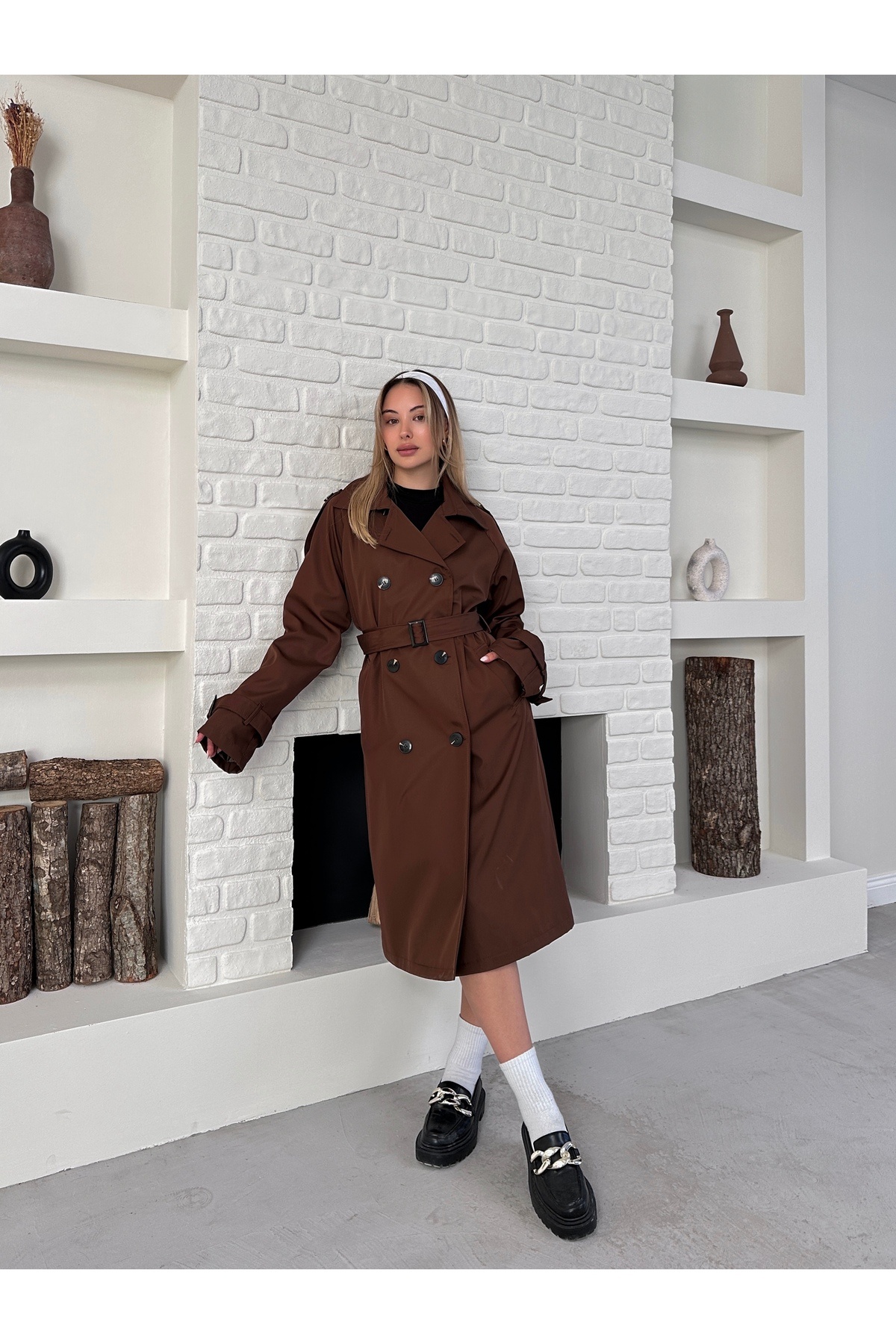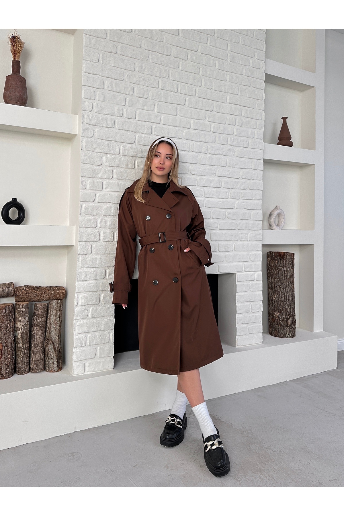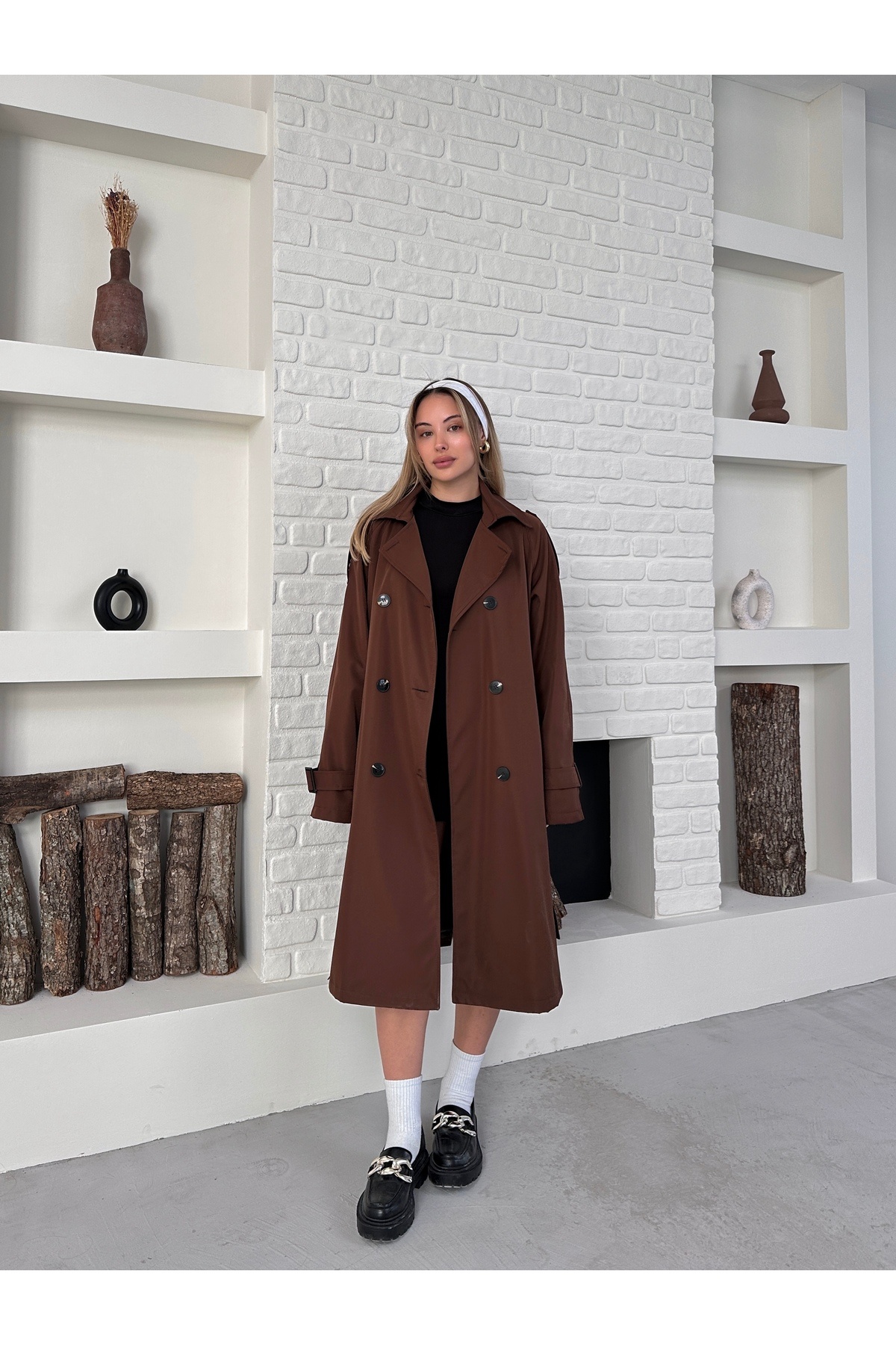 Kruvaze Kemerli Uzun Basic Trençkot Kruvaze Kemerli Uzun Basic Trençkot SND202100235 L