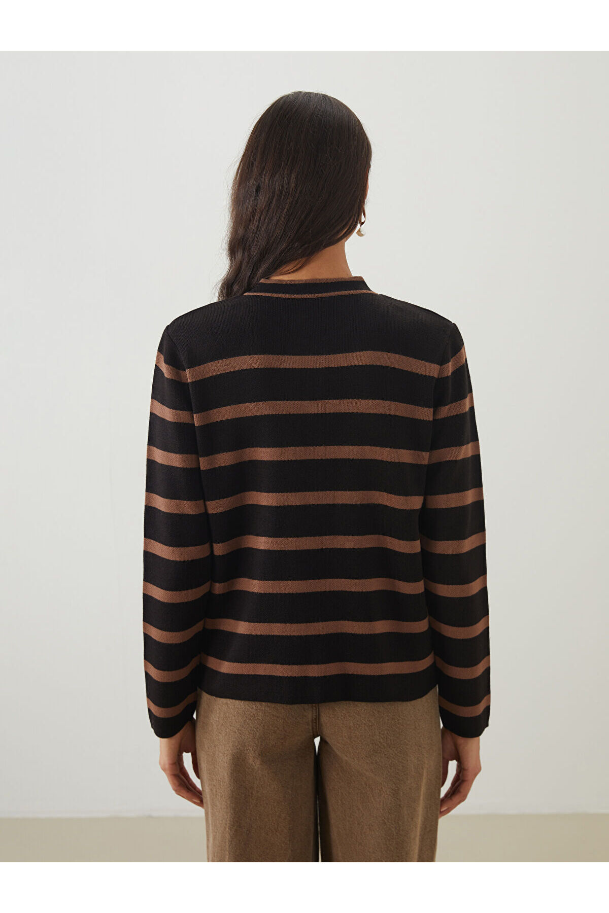 Bisiklet Yaka Çizgili Kadın Triko Hırka Bisiklet Yaka Çizgili Kadın Triko Hırka W5BE79Z8-LEW XL