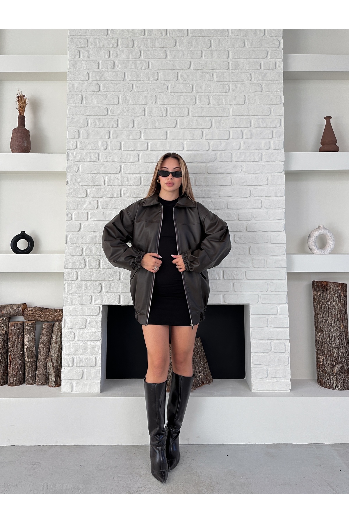 Yeni Sezon Oversize Premium Bomber Deri Ceket Yeni Sezon Oversize Premium Bomber Deri Ceket ET82342542 L