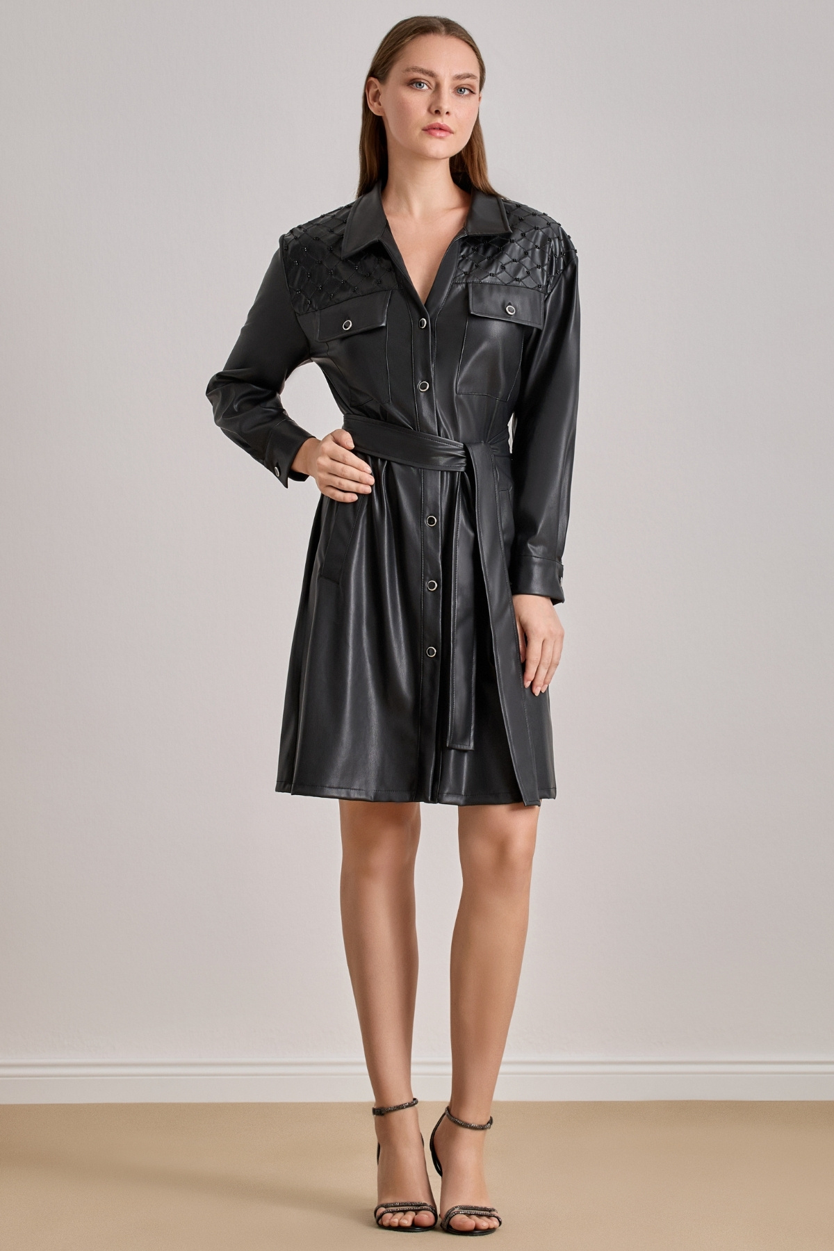 Dökümlü Siyah Şifon Elbise Dökümlü Siyah Şifon Elbise 3U2K25568UR010 48