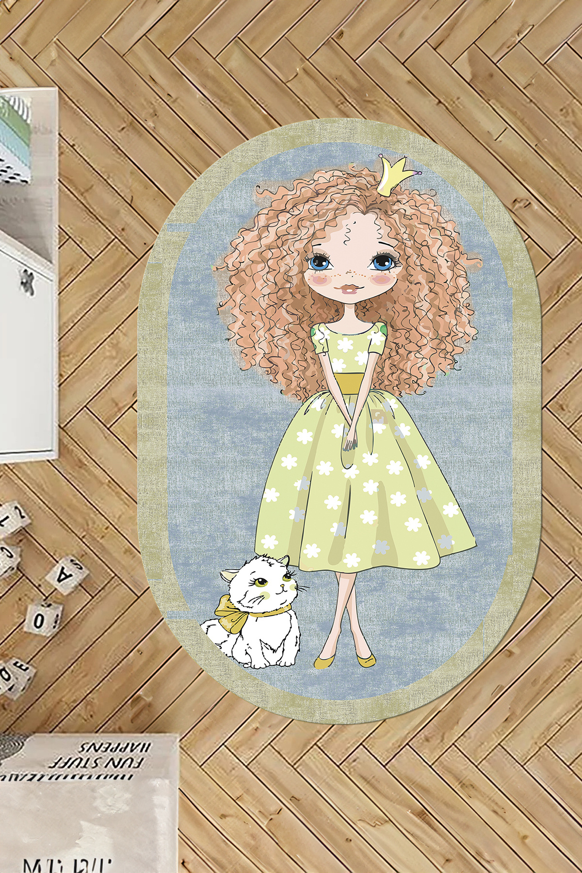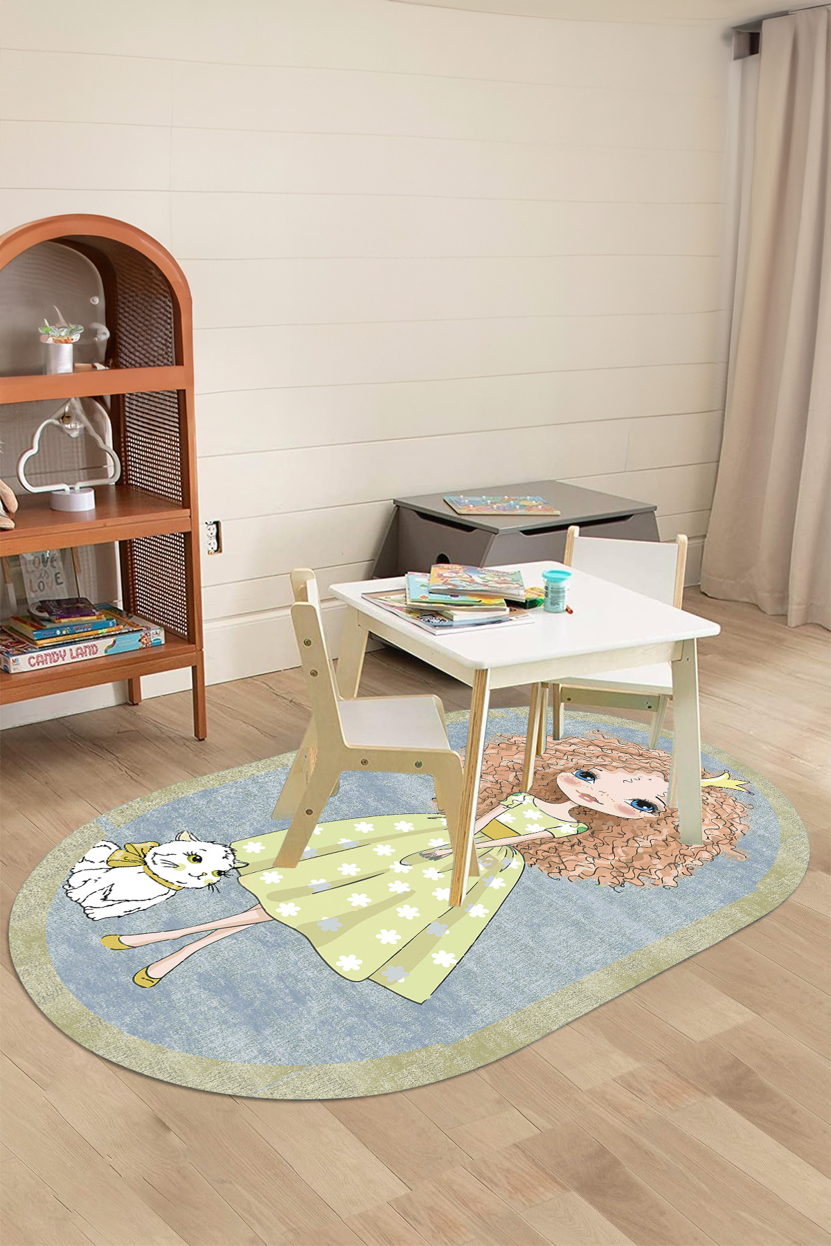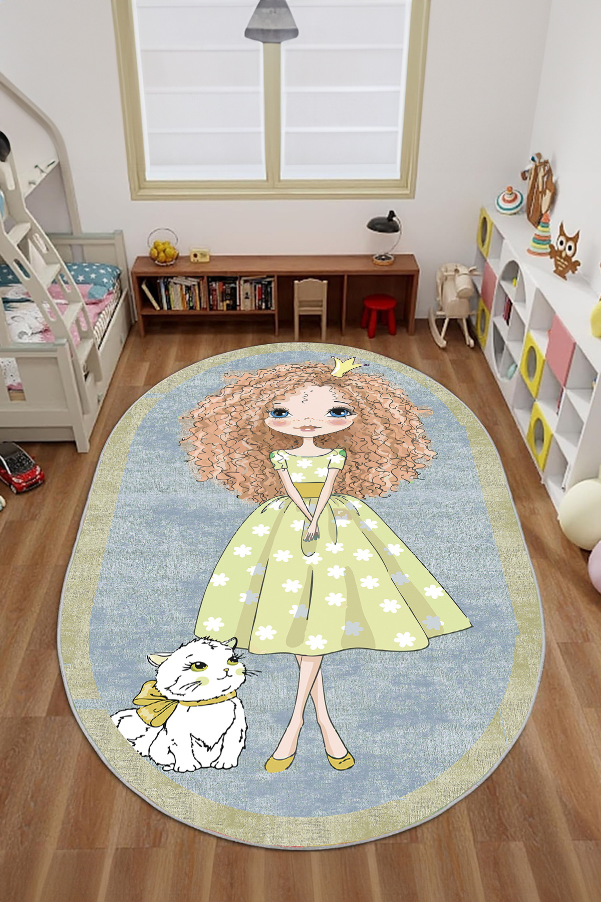 Baskılı Çizgi Film Kedi ve Kız Karakter Desenli Yıkanabilir Kaymaz Oval Çocuk Halısı Baskılı Çizgi Film Kedi ve Kız Karakter Desenli Yıkanabilir Kaymaz Oval Çocuk Halısı O-ÇOCUK-80 160 x 230
