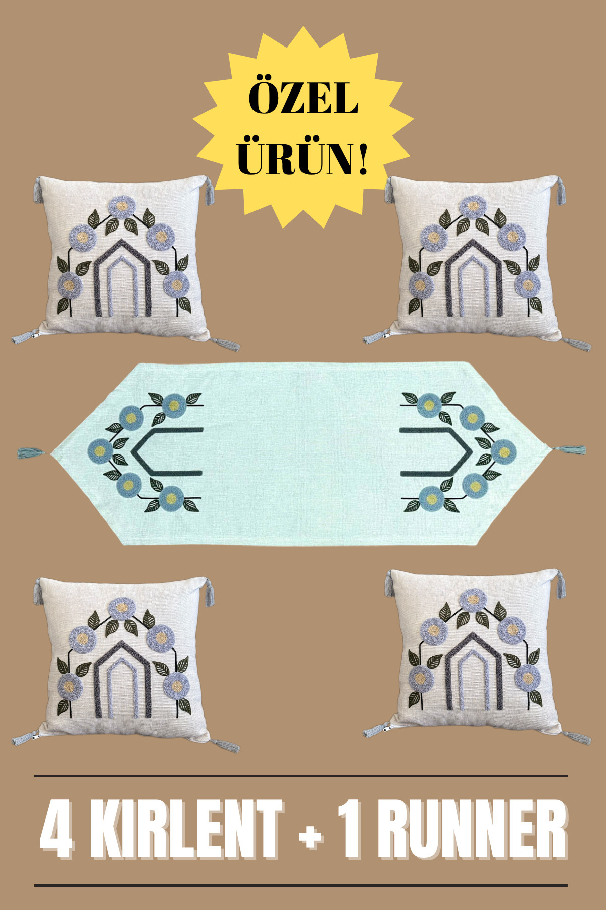Punch Nakışlı 5'li Zarafet Seti – 4 Adet Kırlent & 1 Adet Runner | Şık & Dekoratif Punch Nakışlı 5'li Zarafet Seti – 4 Adet Kırlent & 1 Adet Runner | Şık & Dekoratif S0-T0-SET 43 x 43