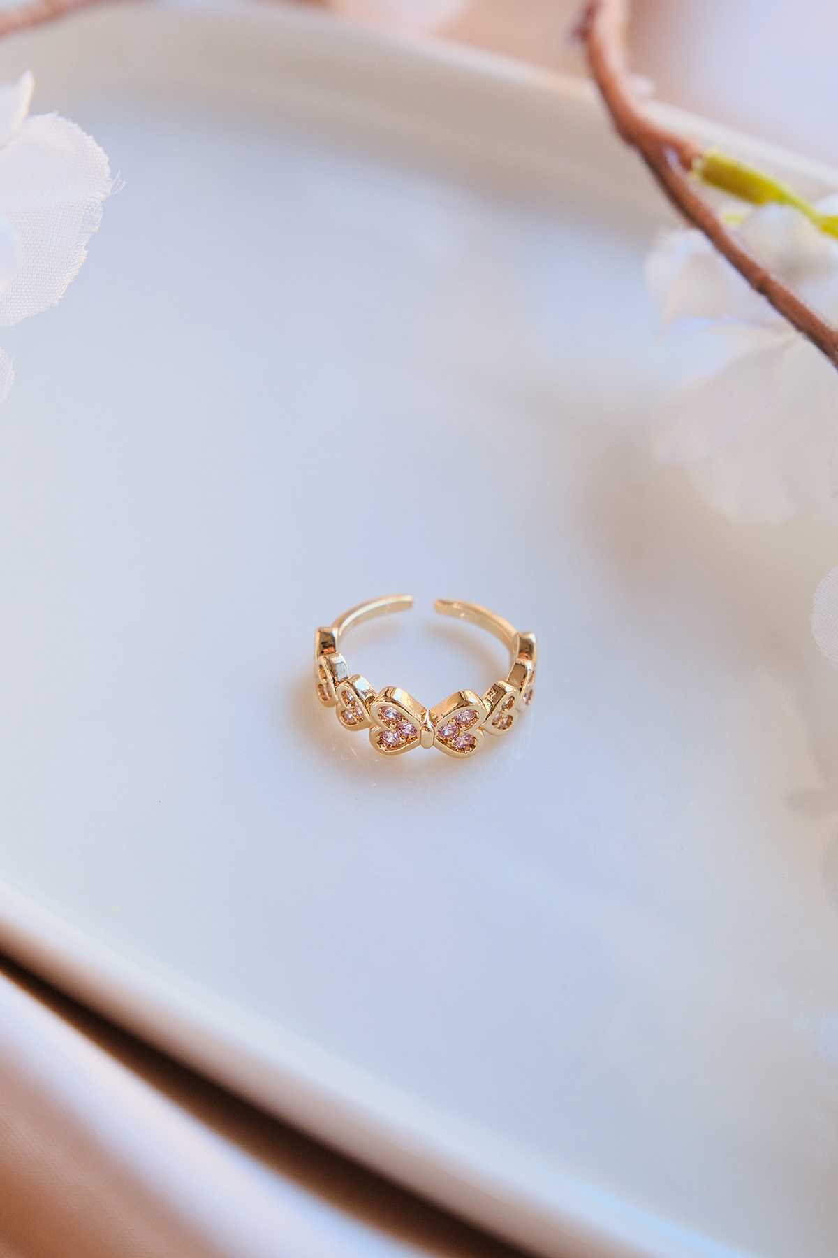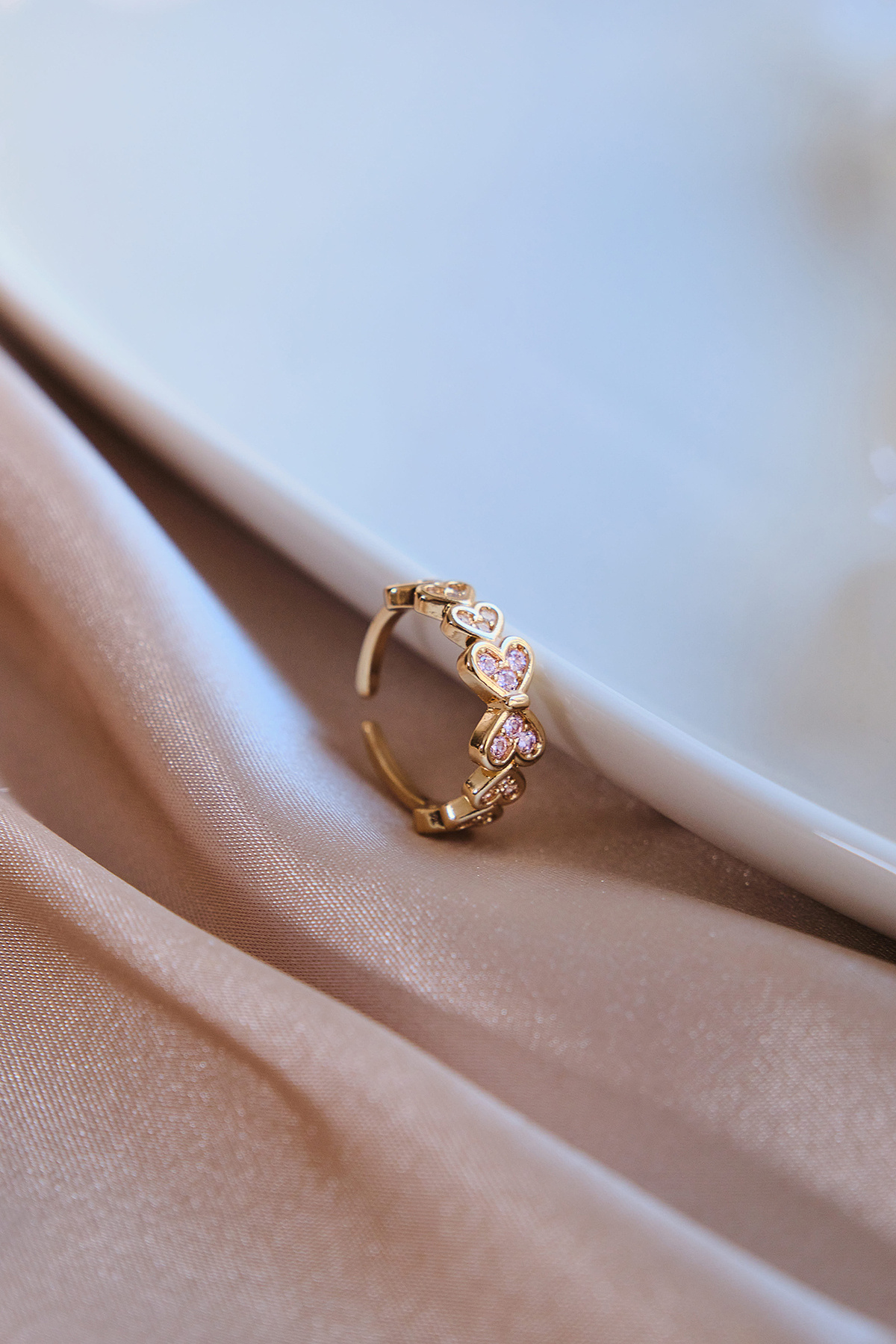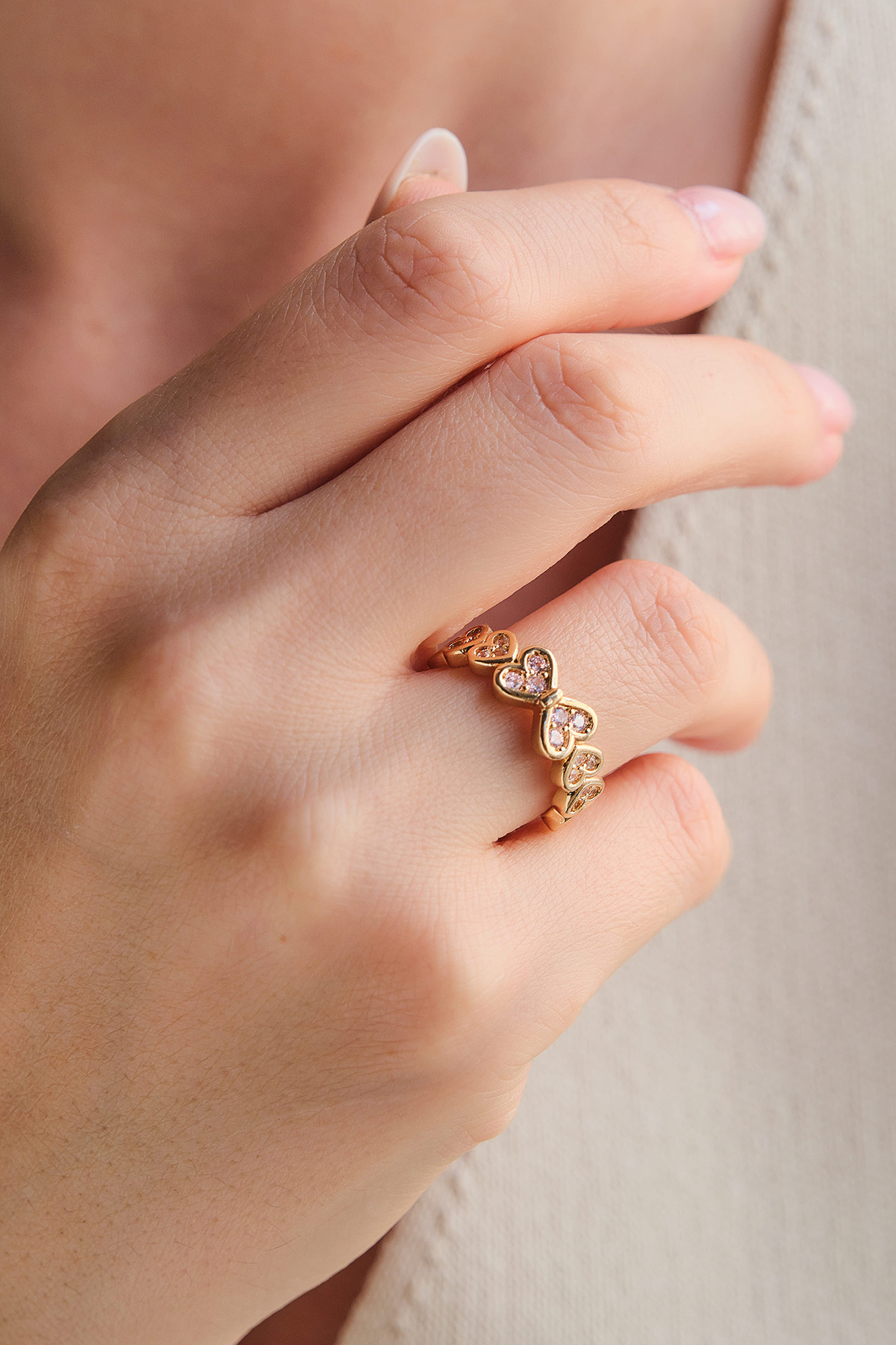 Gold Pembe Zirkon Taşlı Kalp Tasarım Çelik Yüzük Gold Pembe Zirkon Taşlı Kalp Tasarım Çelik Yüzük prnsclk تک سایز
