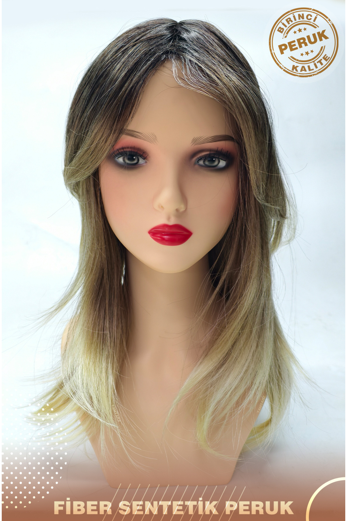 Katlı Kesim Perçemli Orta Boy Düz Fiber Sentetik Peruk - Ombreli Katlı Kesim Perçemli Orta Boy Düz Fiber Sentetik Peruk - Ombreli MODEL-L2556 تک سایز