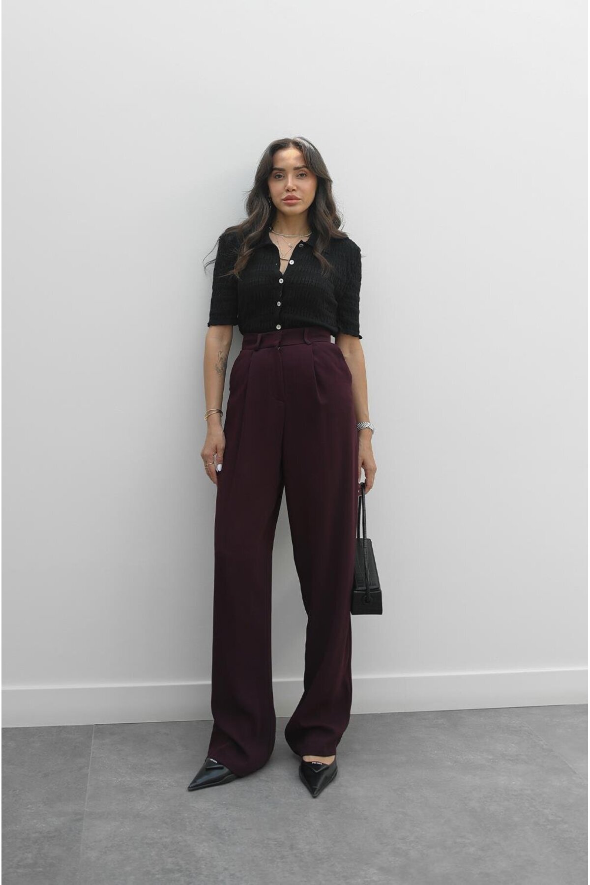 Mürdüm Yüksek Bel Kadın Palazzo Pantolon MG2506 Mürdüm Yüksek Bel Kadın Palazzo Pantolon MG2506 XL