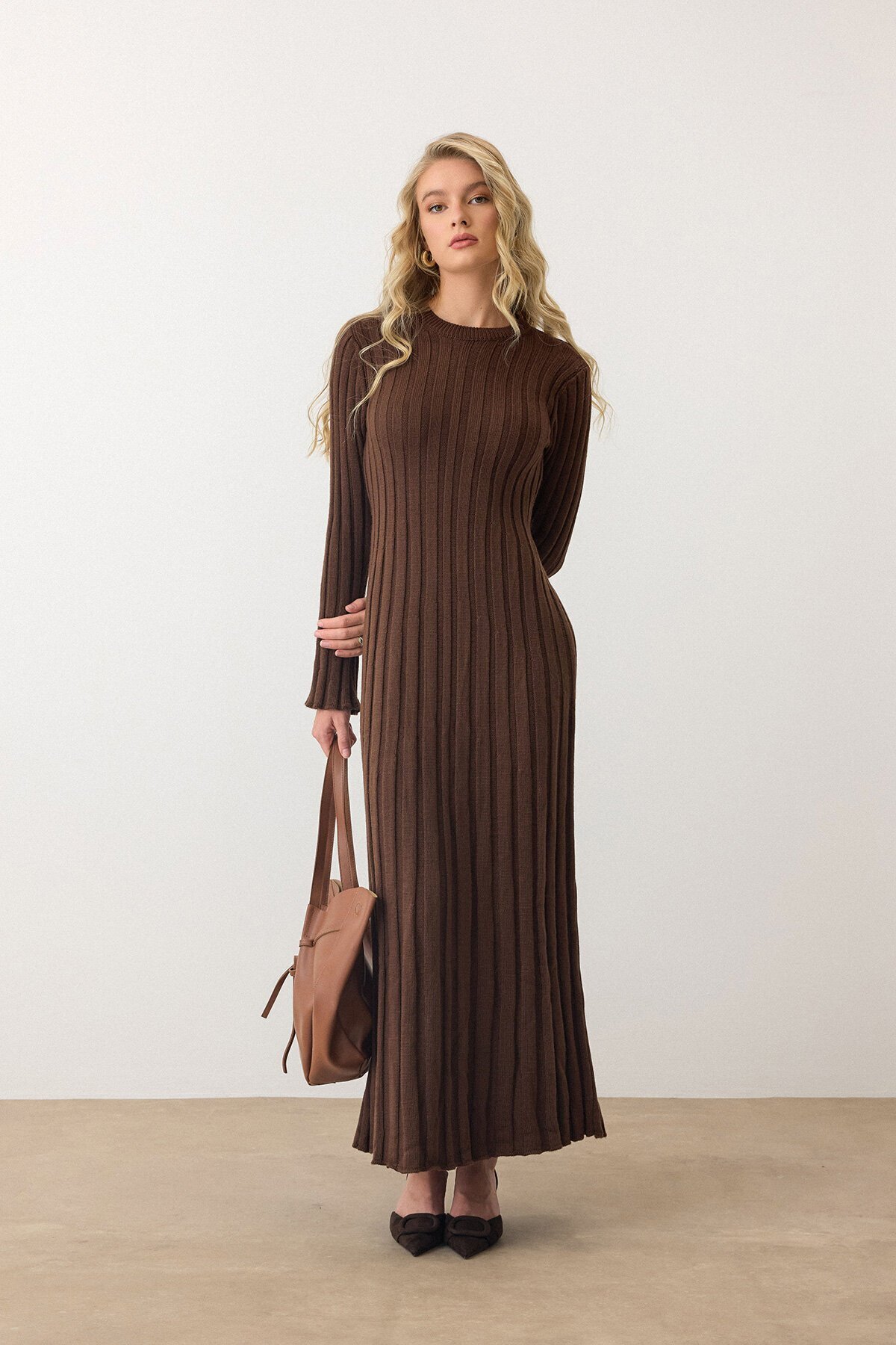Dokulu Triko Uzun Elbise Dokulu Triko Uzun Elbise MBF7G4WV L