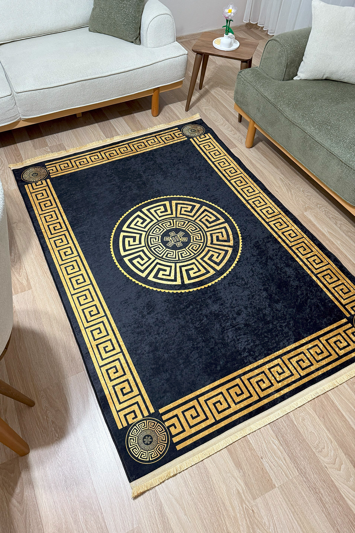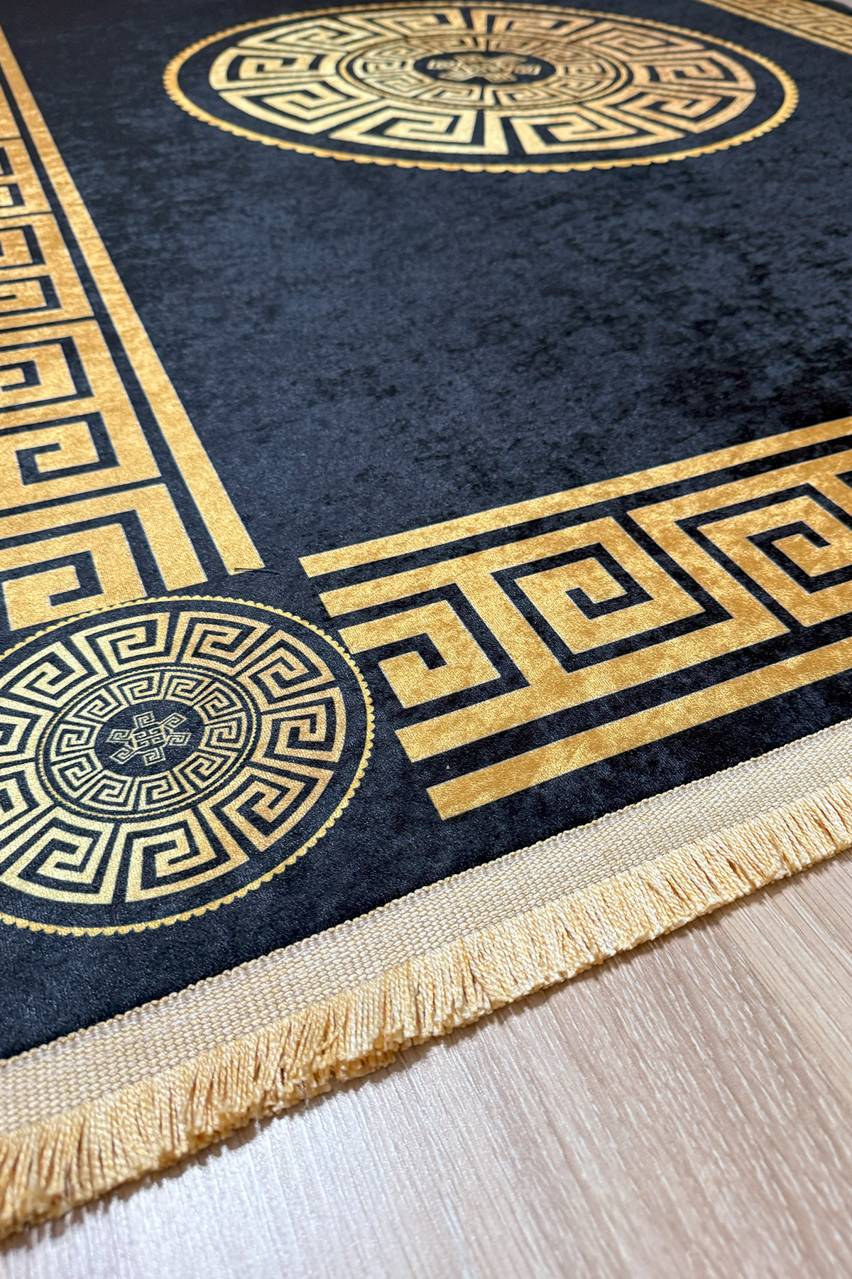 Gold Greek Desenli Gold Saçaklı Makinede Yıkanabilir Salon Halısı Yatak Odası Halısı & Yolluk Gold Greek Desenli Gold Saçaklı Makinede Yıkanabilir Salon Halısı Yatak Odası Halısı & Yolluk CM001040 160 x 230