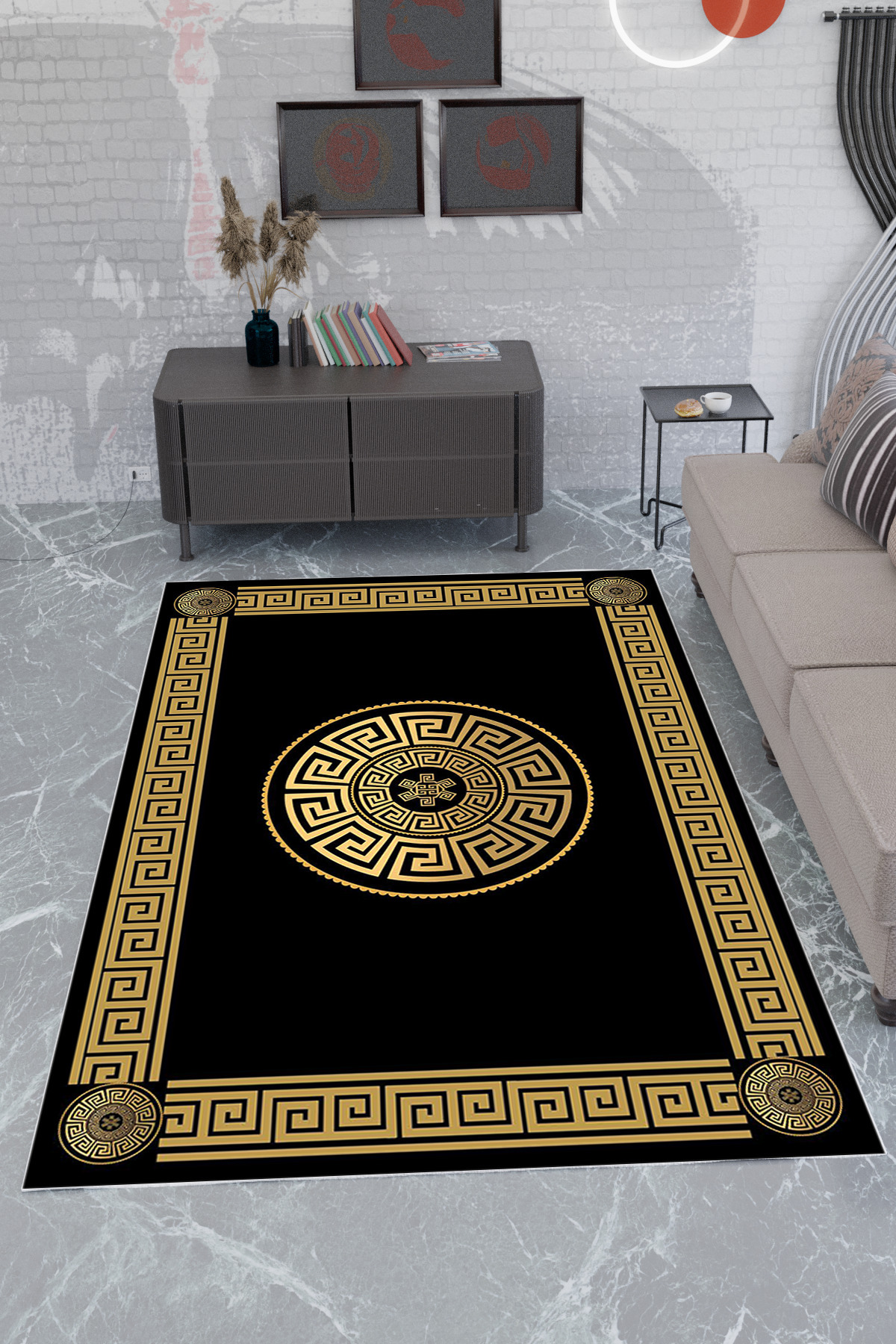 Gold Greek Desenli Oval Makinede Yıkanabilir Salon Halısı Yatak Odası Halısı & Yolluk Gold Greek Desenli Oval Makinede Yıkanabilir Salon Halısı Yatak Odası Halısı & Yolluk CM001040 160 x 230
