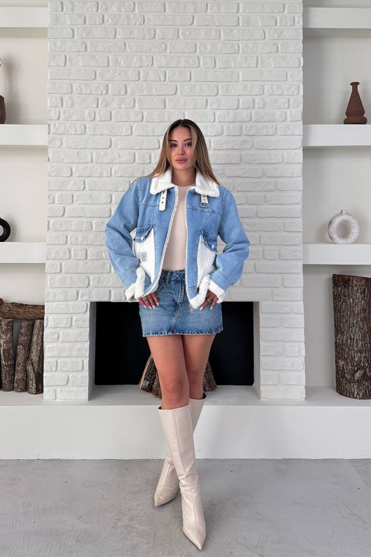 Kadın Kürk Detaylı Denim Kot Ceket Kadın Kürk Detaylı Denim Kot Ceket 2013 L