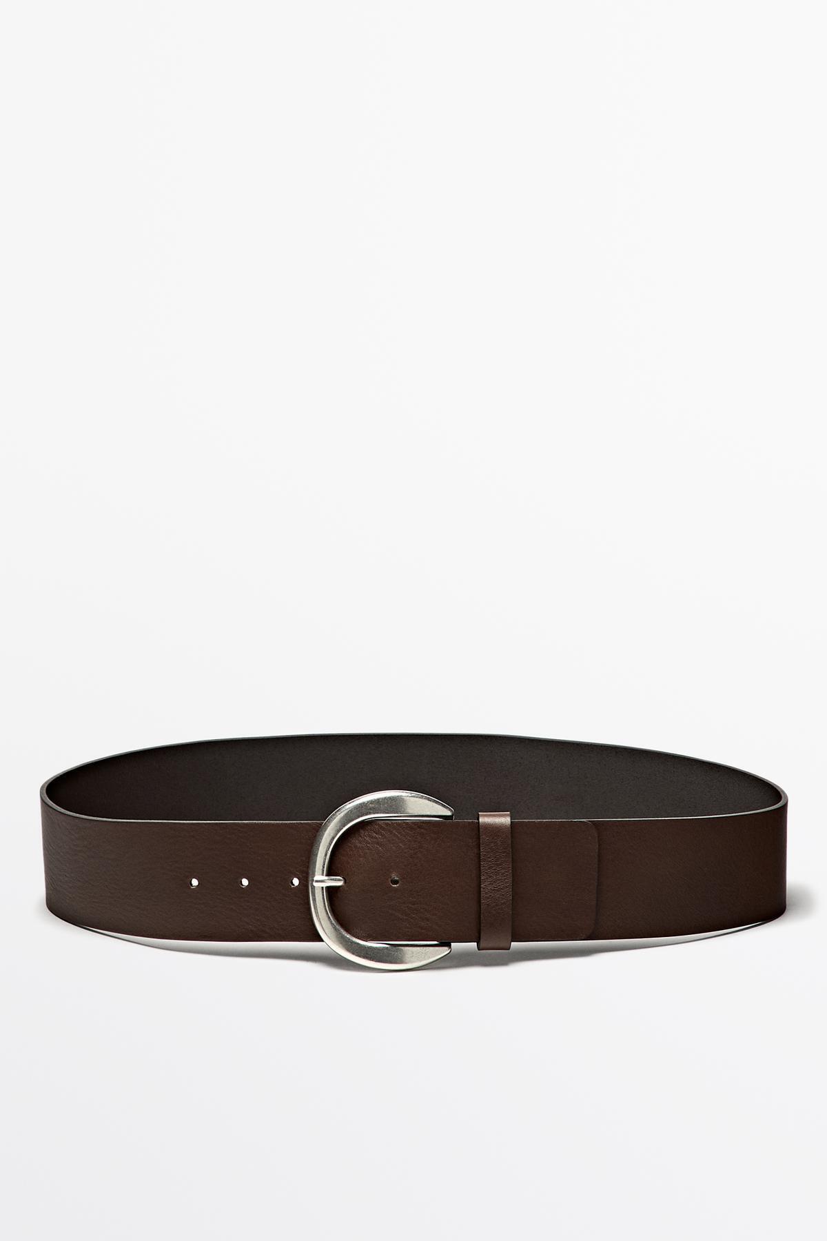 Yuvarlak tokalı yırtmaçlı deri kemer Yuvarlak tokalı yırtmaçlı deri kemer 00110779206198674 L