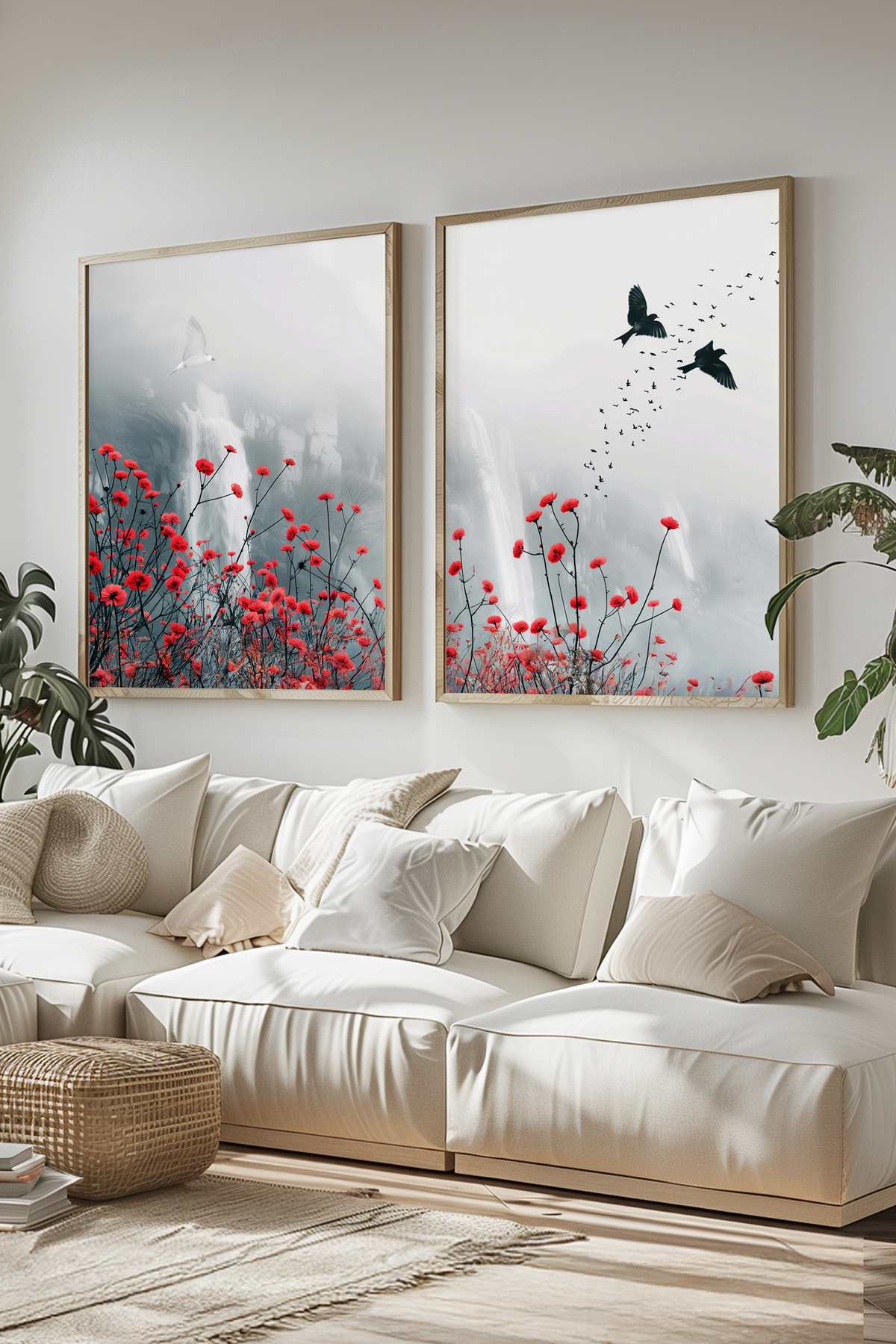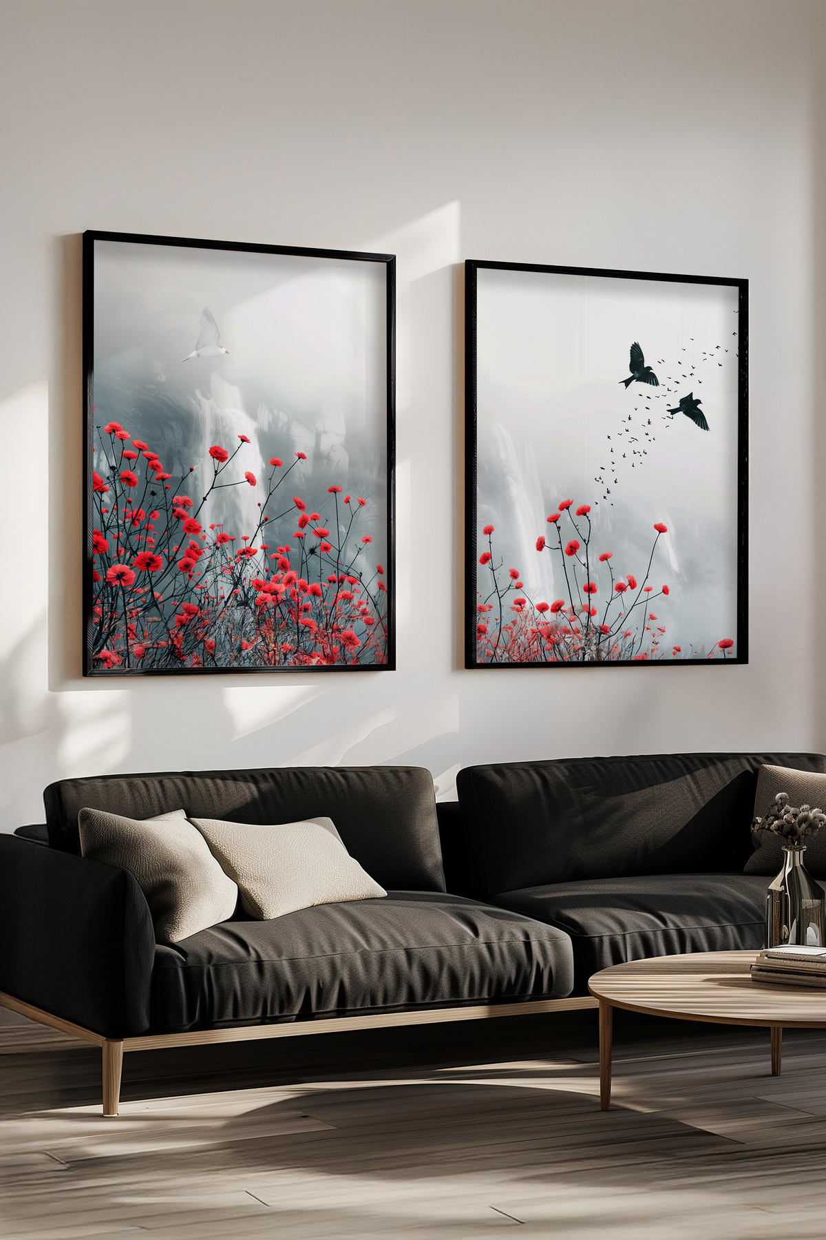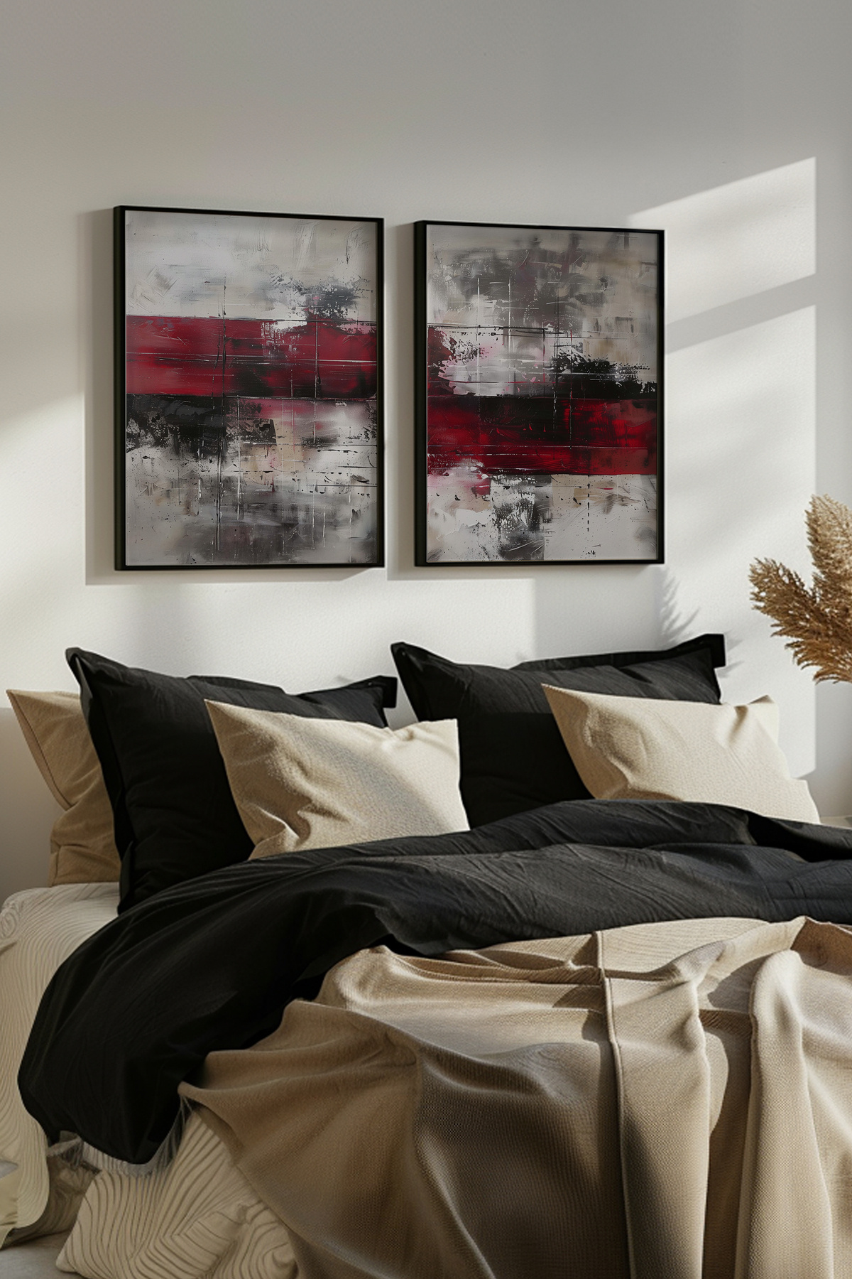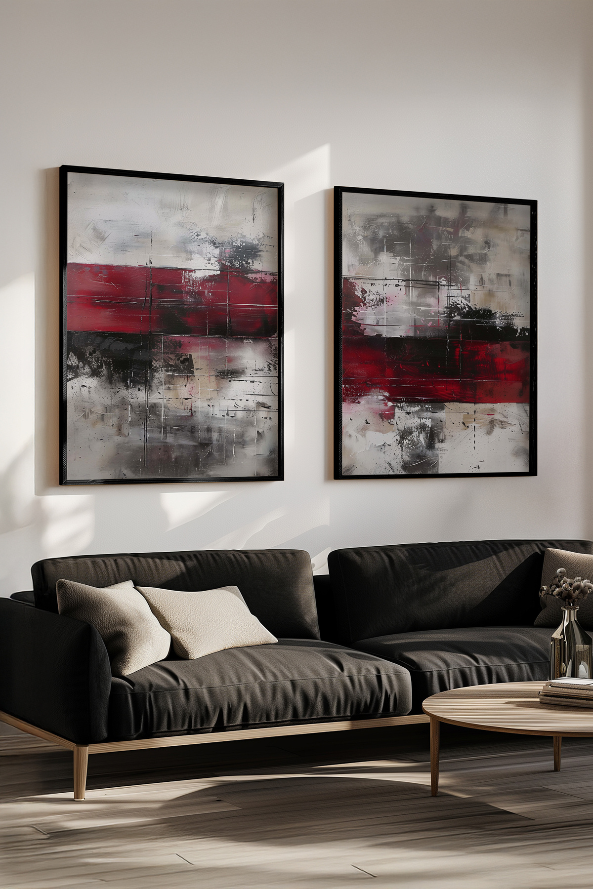 Siyah Ahşap Çerçeveli Kırmızı ve Siyah Soyut Modern Yağlıboya Efektli İkili Tablo Seti Yuna341 Siyah Ahşap Çerçeveli Kırmızı ve Siyah Soyut Modern Yağlıboya Efektli İkili Tablo Seti Yuna341 50 x 70