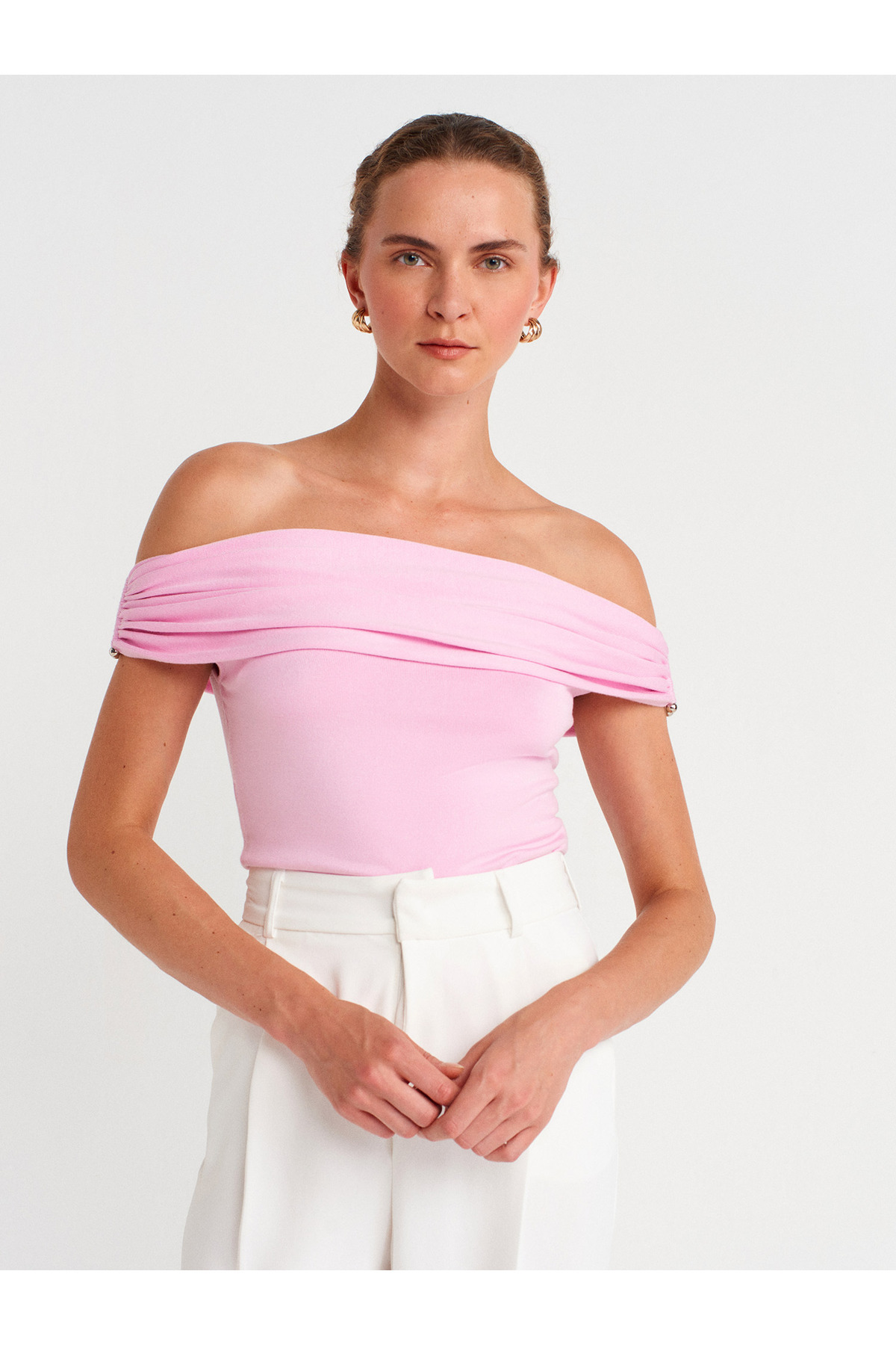 10797 Bardot Yaka Metal Detaylı Triko Bluz-Ekru 10797 Bardot Yaka Metal Detaylı Triko Bluz-Ekru 101A10797 Standart