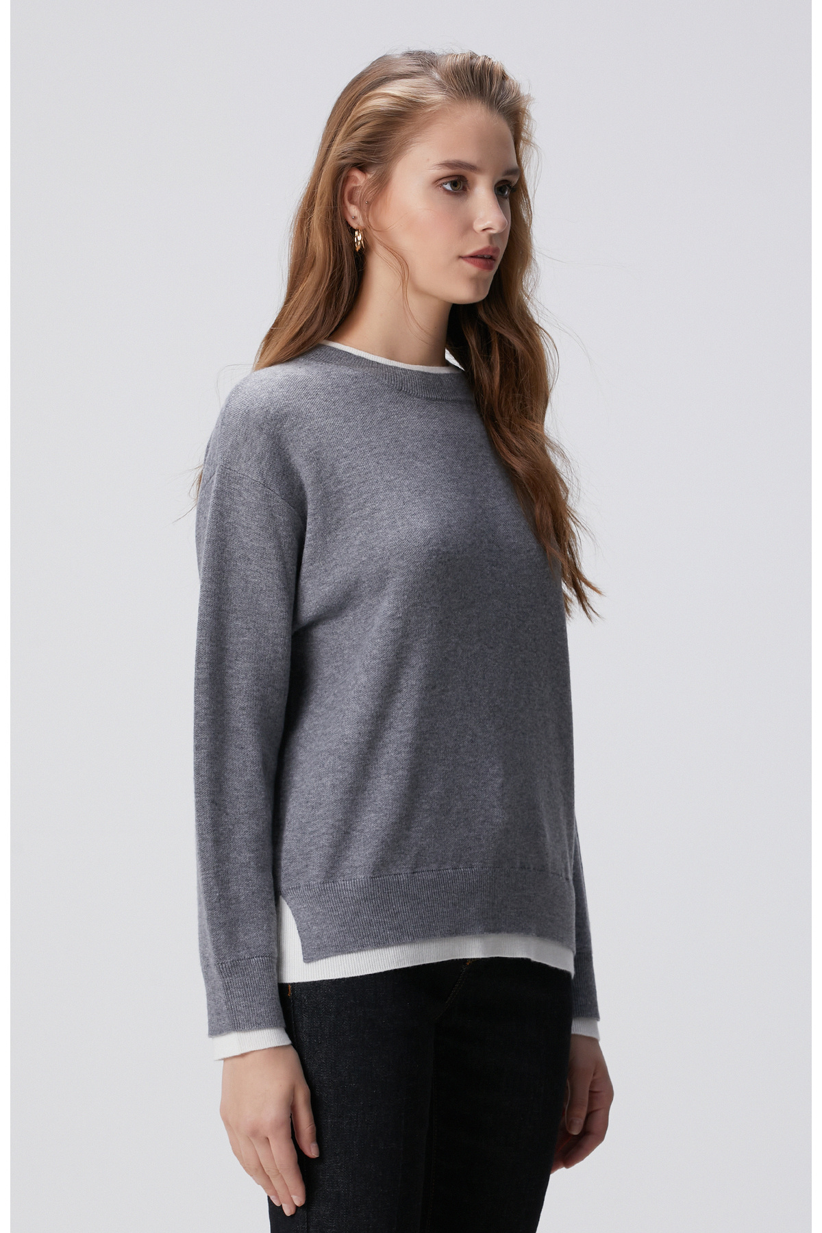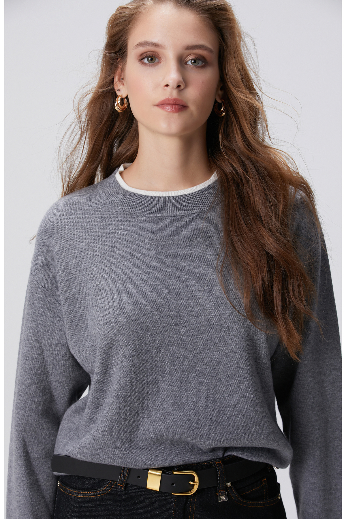 Açık Gri Melanj Yün Karışımlı Oversize Triko Kazak Açık Gri Melanj Yün Karışımlı Oversize Triko Kazak 1095679 XL