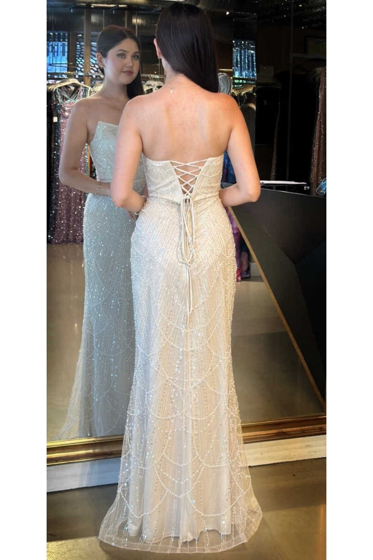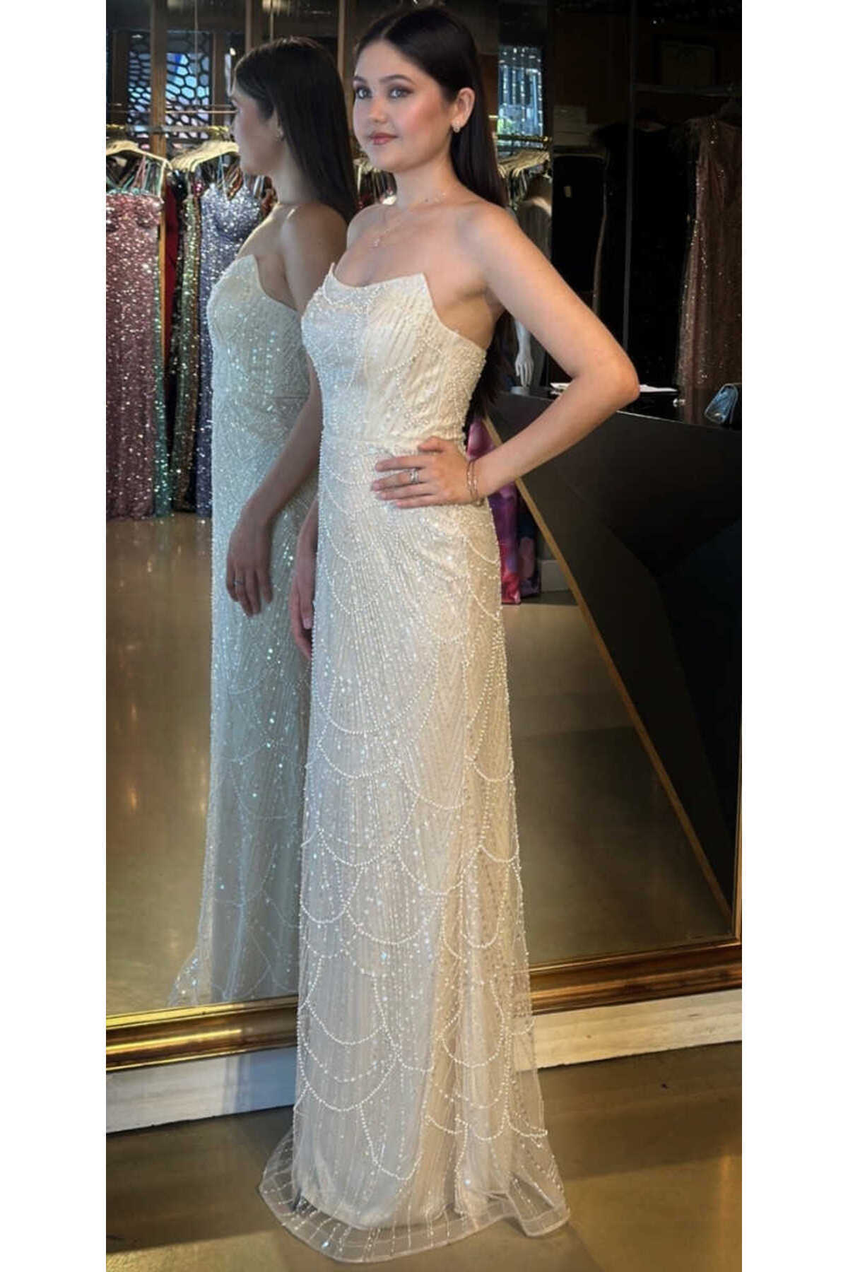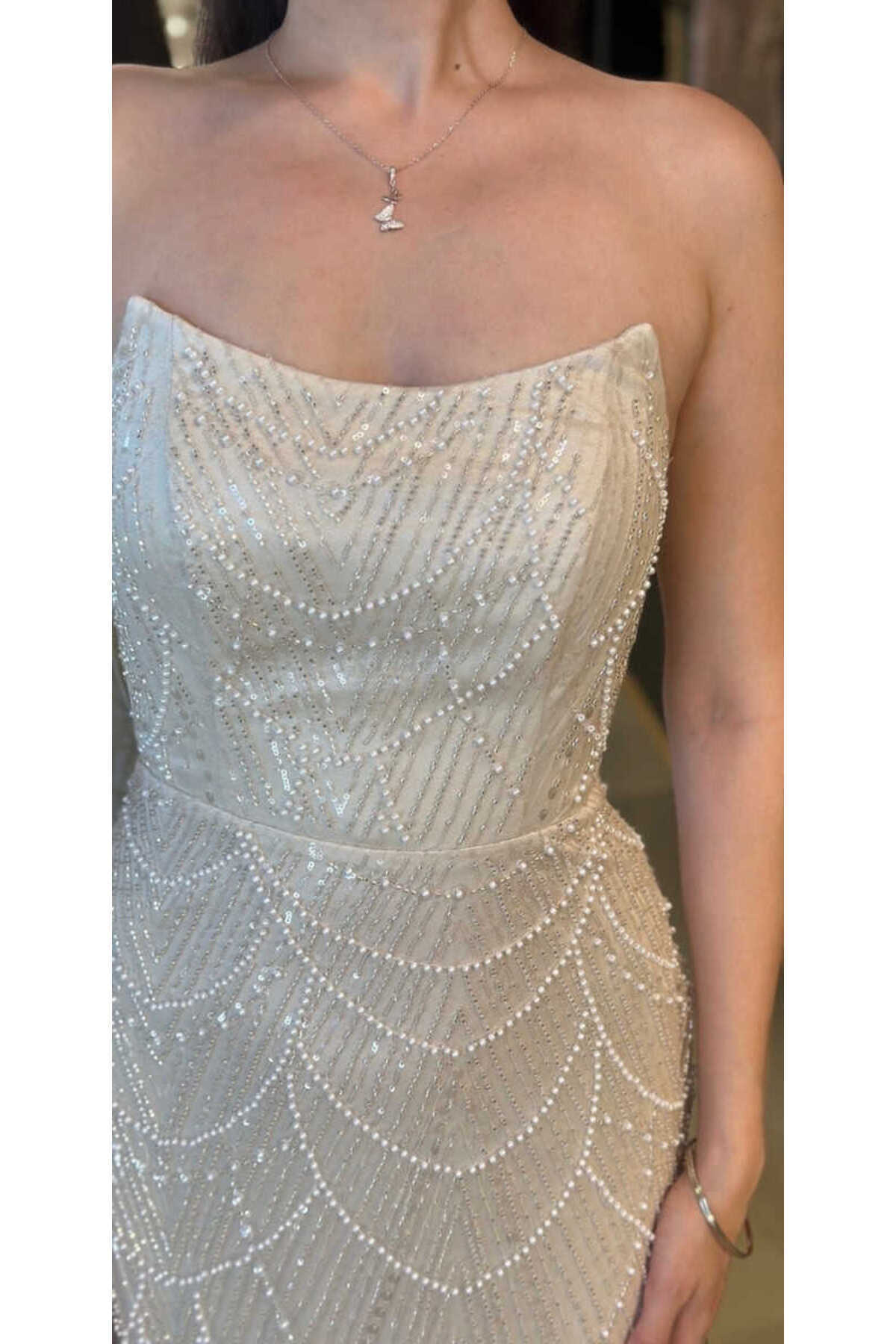 Krem Straplez Yaka Sırt Dekolteli Düz Kesim Pullu Boncuklu Uzun Abiye Elbise 7778 Krem Straplez Yaka Sırt Dekolteli Düz Kesim Pullu Boncuklu Uzun Abiye Elbise 7778 48