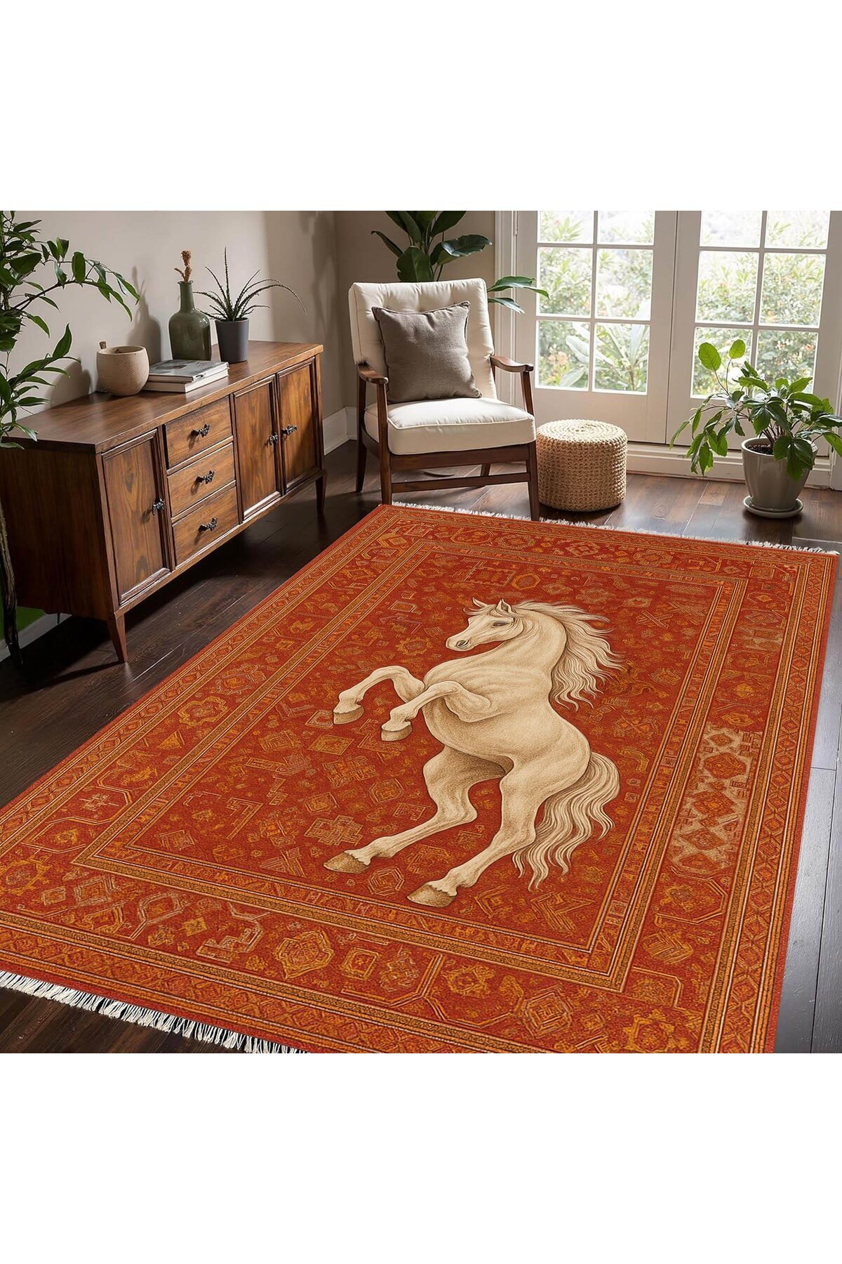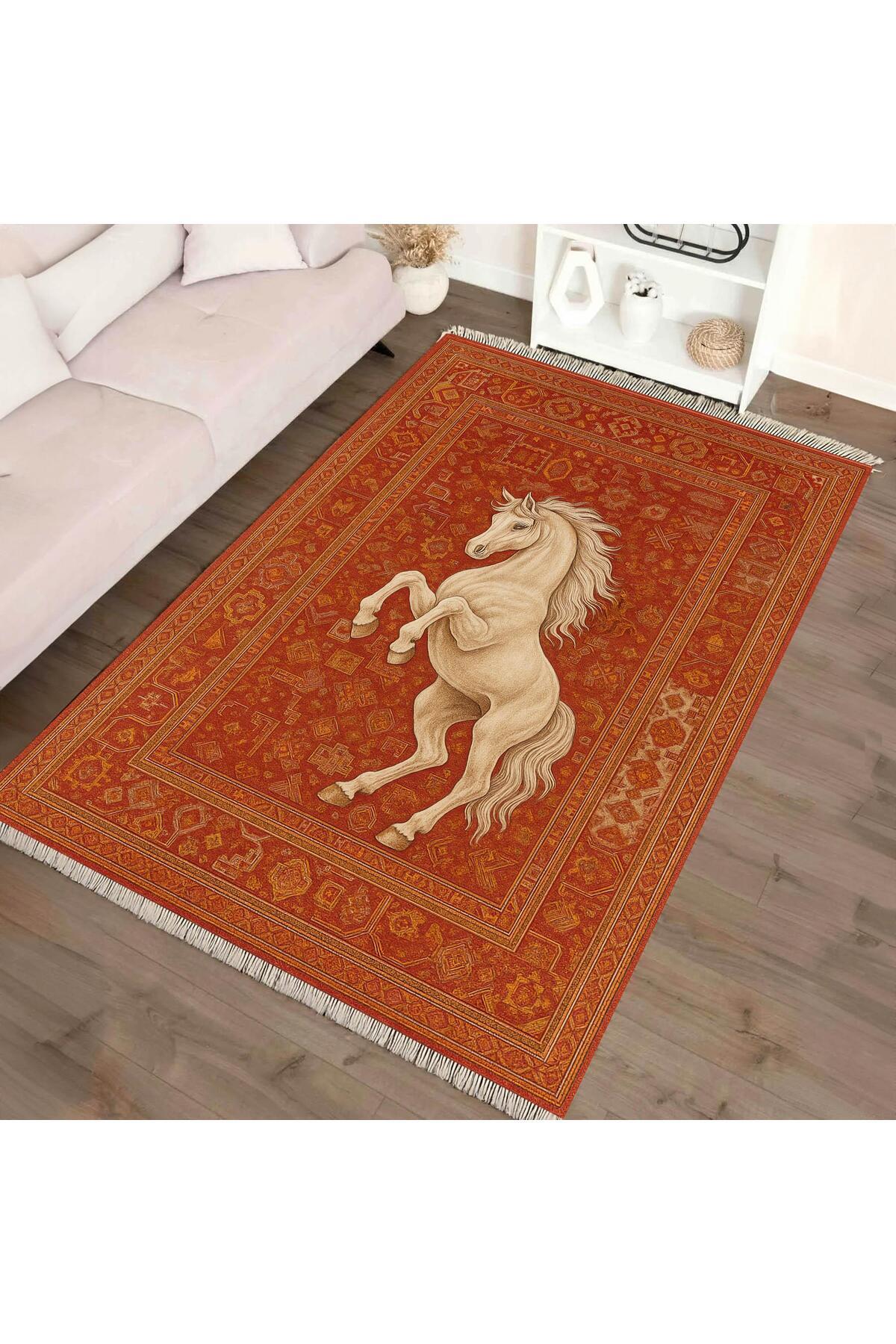 At Figürlü Vintage Kırmızı Desenli Halı Etnik Kilim Dokuma Taban Halı 327 YNG At Figürlü Vintage Kırmızı Desenli Halı Etnik Kilim Dokuma Taban Halı 327 YNG DJHL00327 180 x 280