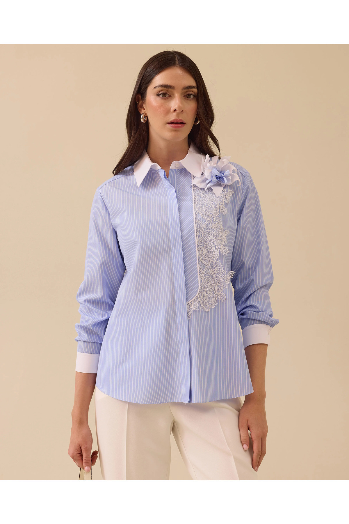 Çizgi Detaylı Düğmeli Gömlek Çizgi Detaylı Düğmeli Gömlek 10002521510008 44