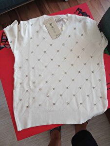 Taş Detaylı Desenli Triko Bluz Taş Detaylı Desenli Triko Bluz 10002521710021 Standart